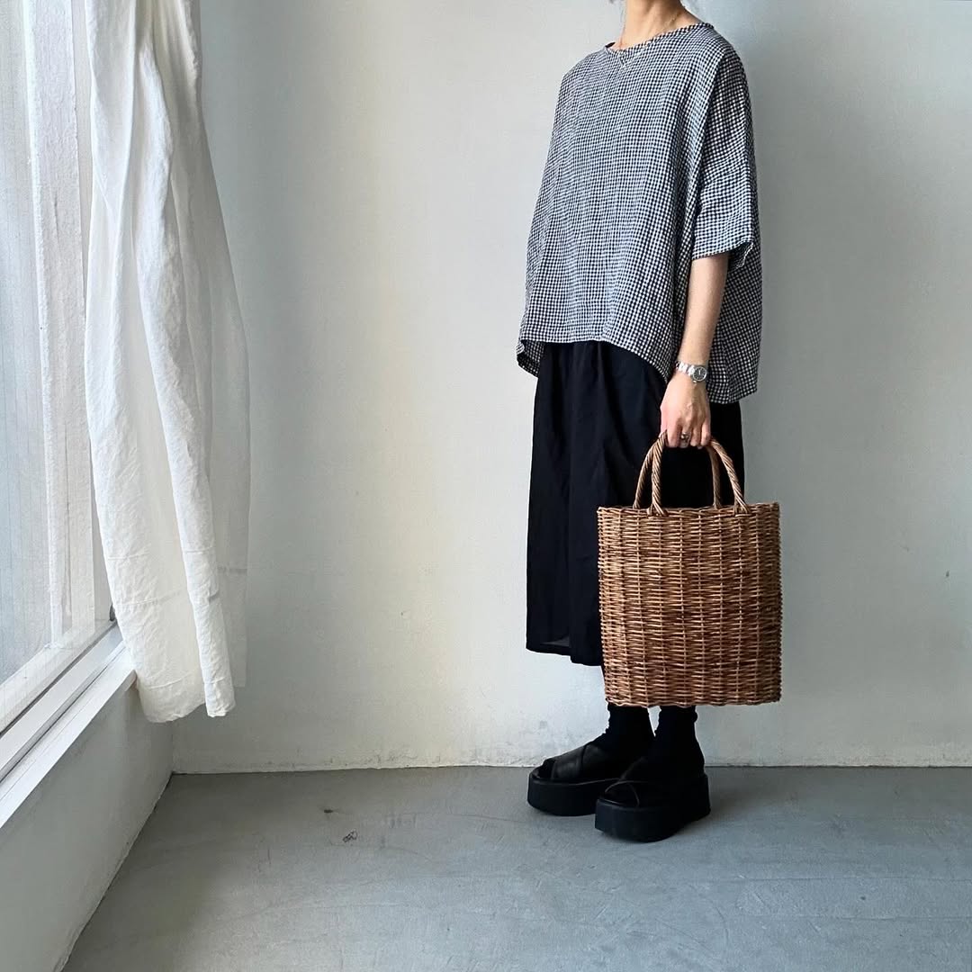白黒ギンガムチェックのリネン。透け感はあまり感じません。