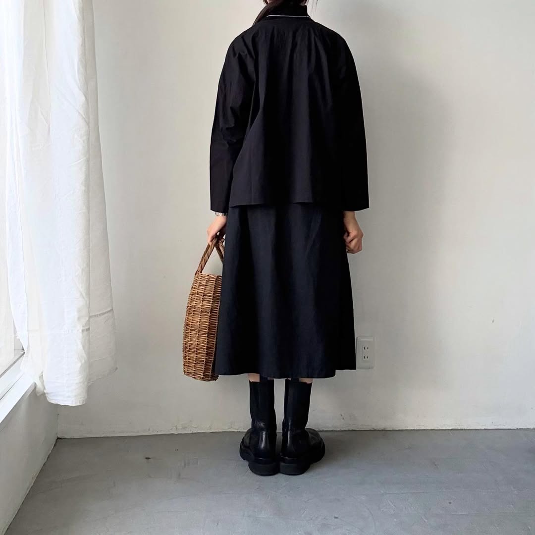 ジャケットみたいなシャツ。ジャケットに近いです。この形が大好きで今季も特別にお願いして作っていただきました。