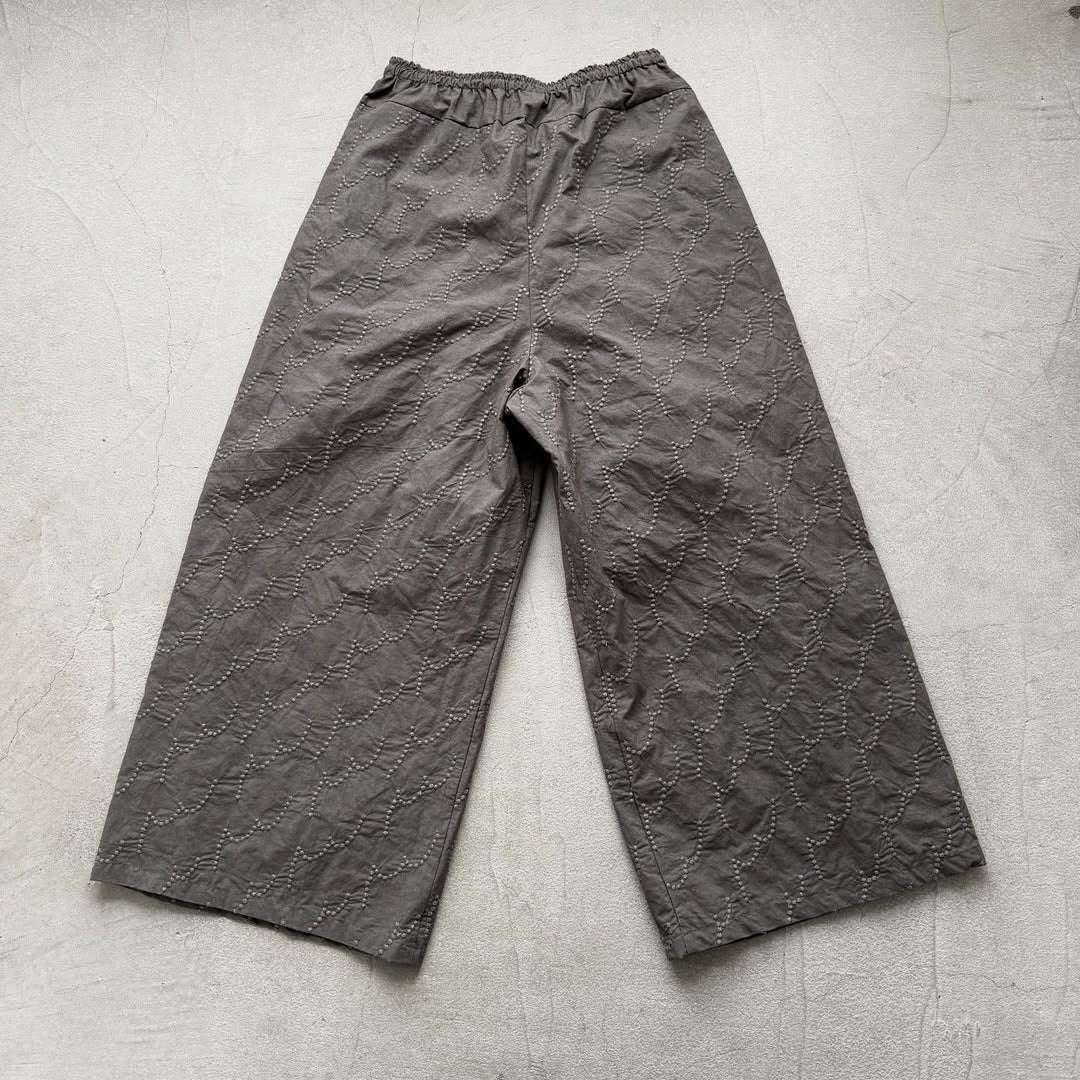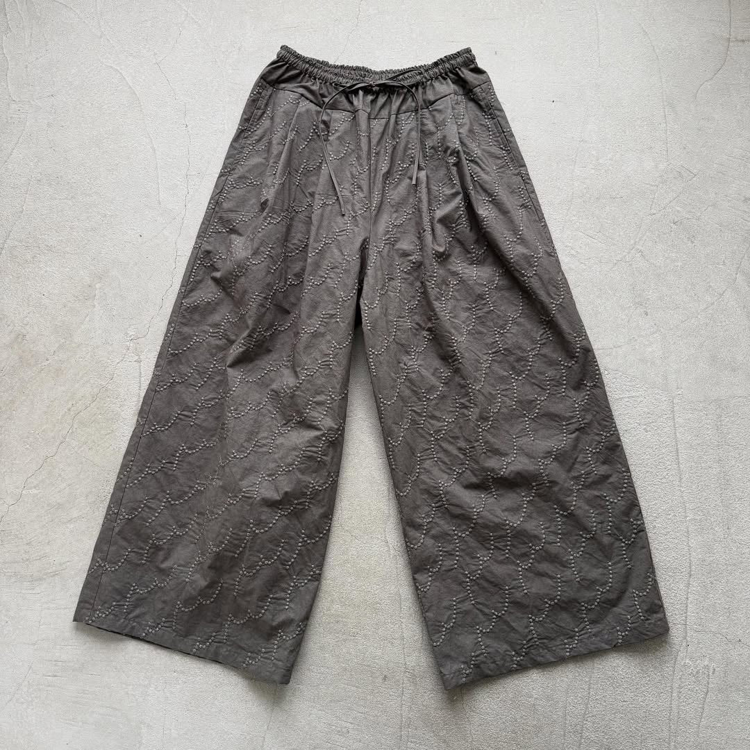 fractal(フラクタル)と名付けられた張り感のあるコットン生地に刺繍で柄が施されています。