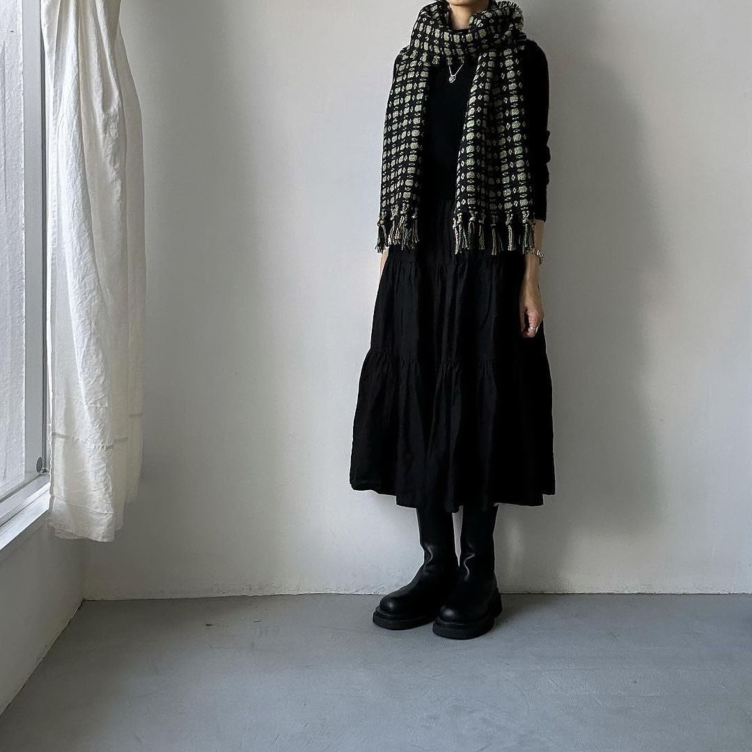 首周りにぐるぐる巻いたり、ただ簡単に垂らして巻くだけでも存在感があります。