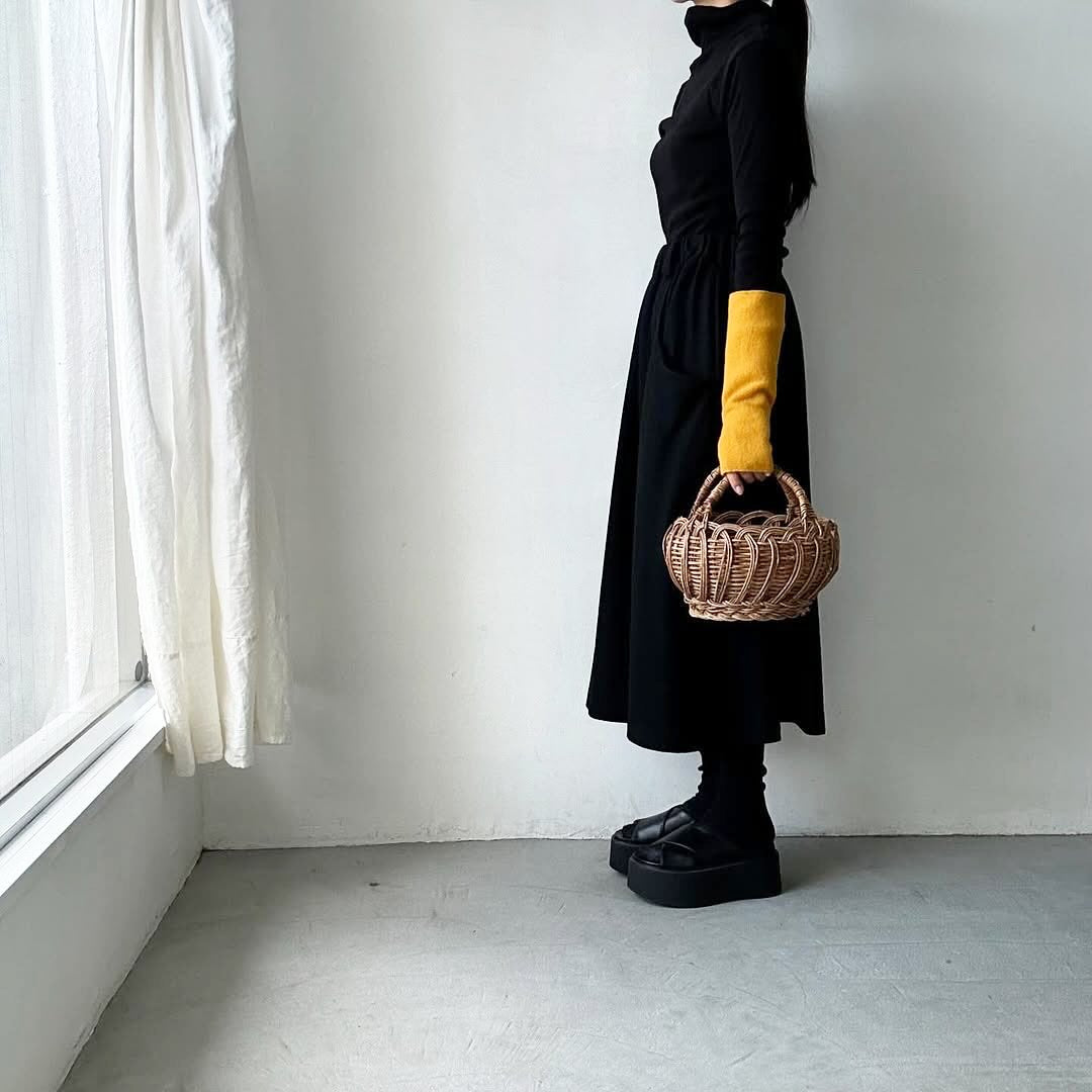 ジャケットから覗かせて袖口の色遊びを。親指を出す穴もあります。
