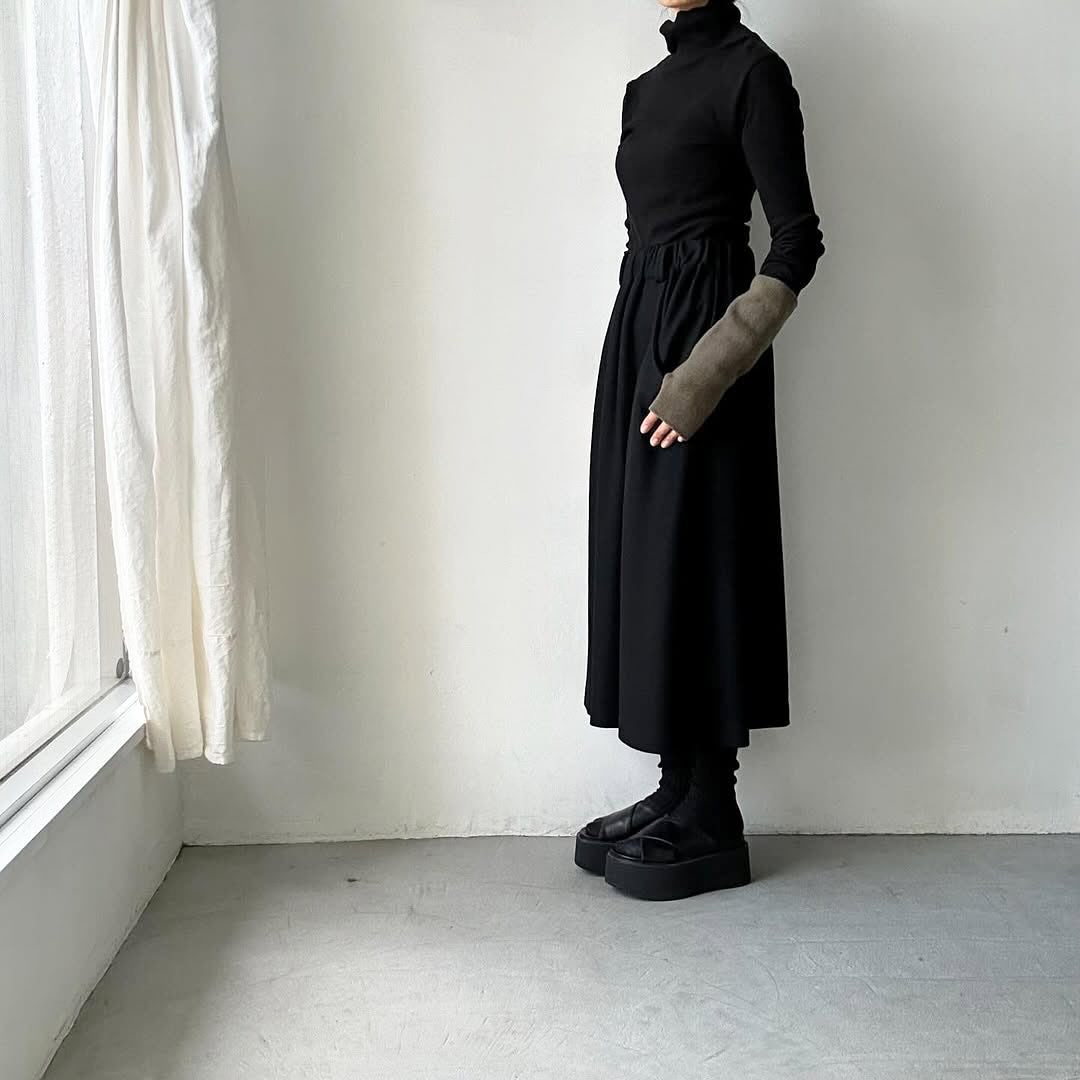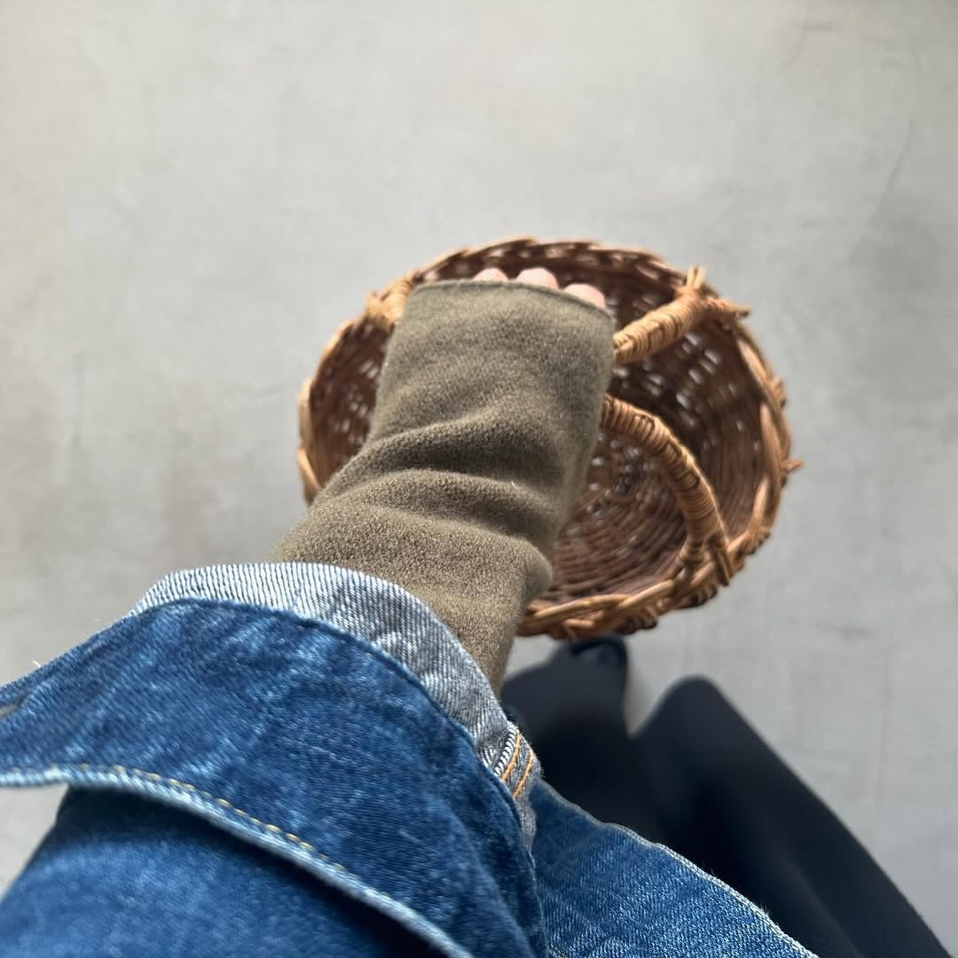 ジャケットから覗かせて袖口の色遊びを。親指を出す穴もあります。