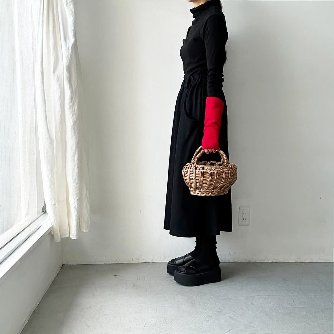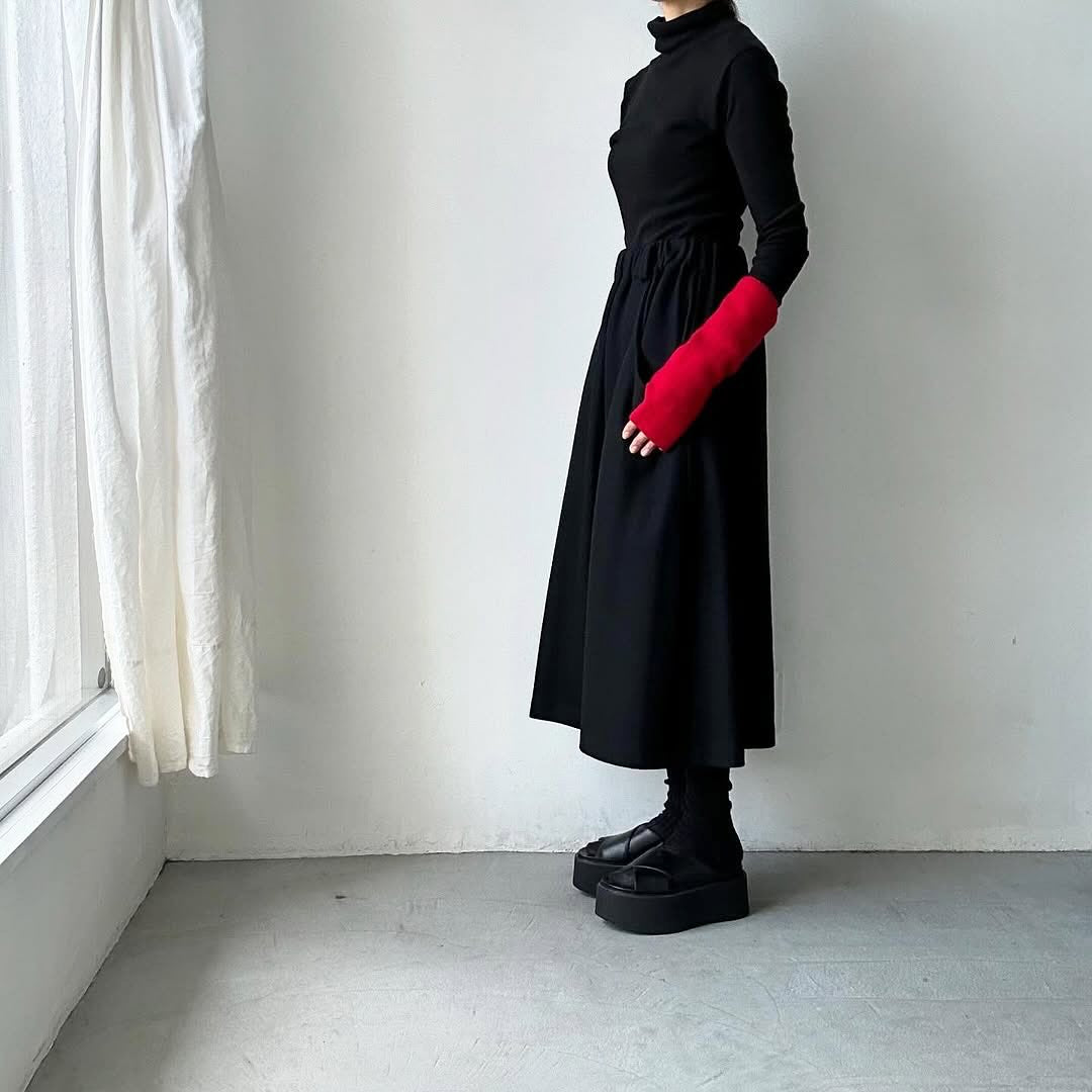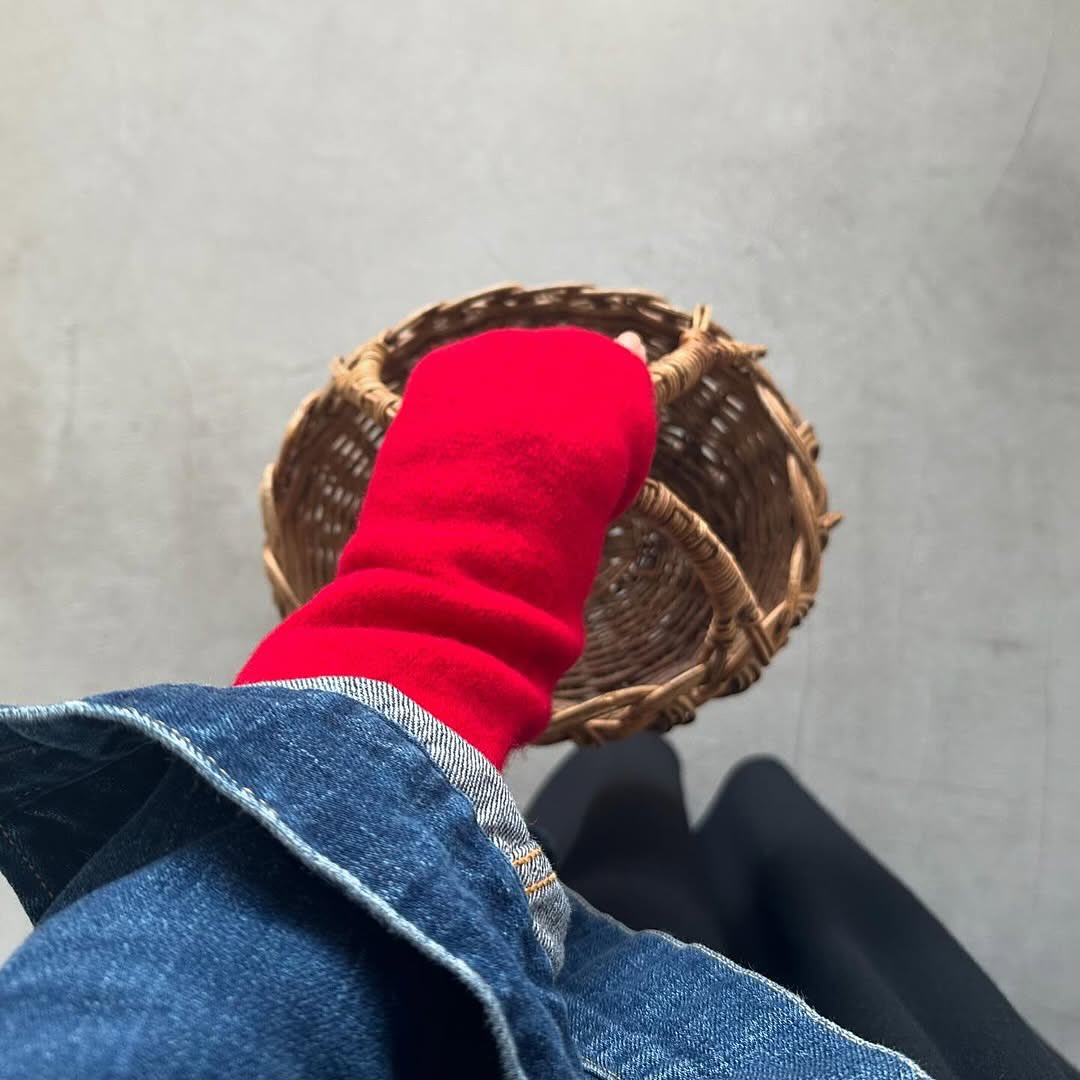ジャケットから覗かせて袖口の色遊びを。親指を出す穴もあります。