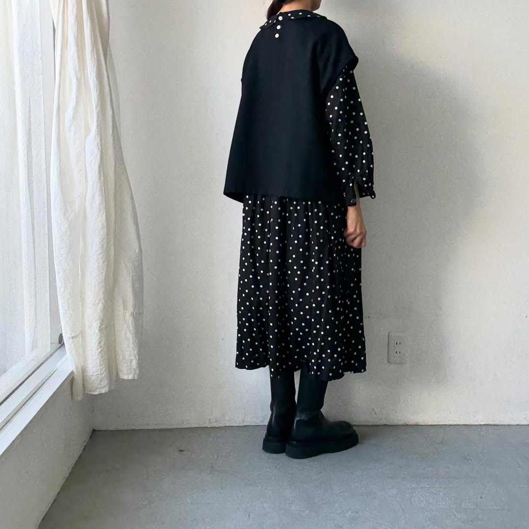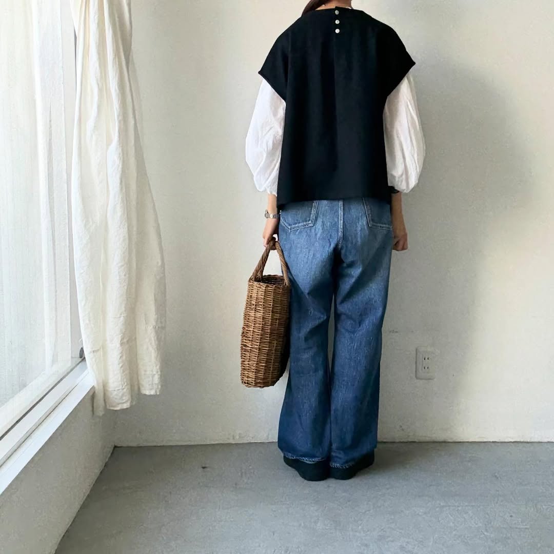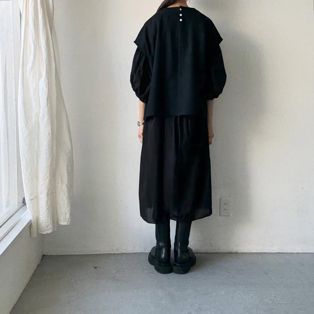 裾内側には両サイドに2つずつボタンホールが開けられていて、そこにご自身で紐を通していただけます。ぎゅっと絞ると丸いシルエットでもご着用いただけます。(紐はご自身でご用意くださいませ)