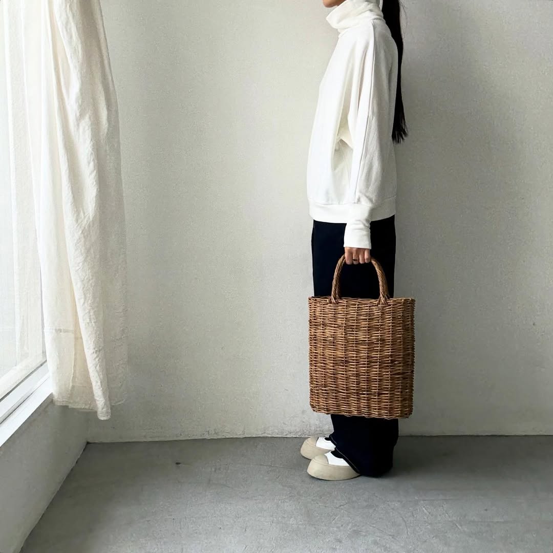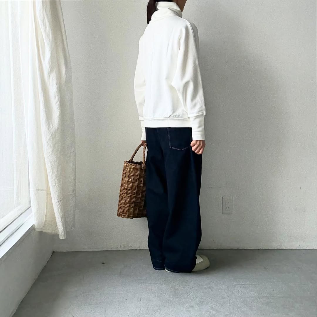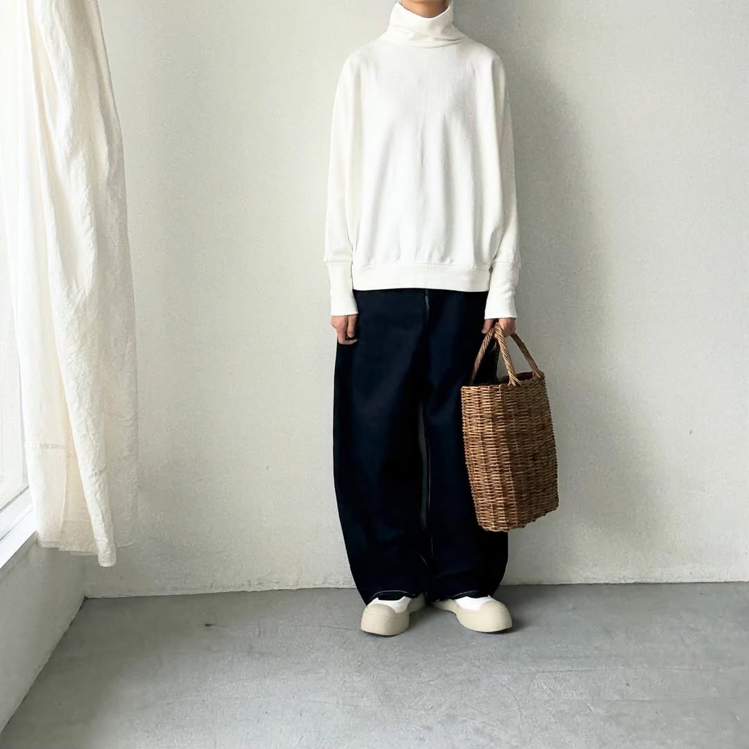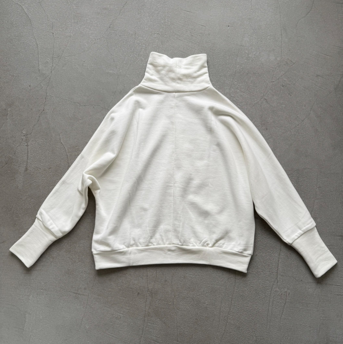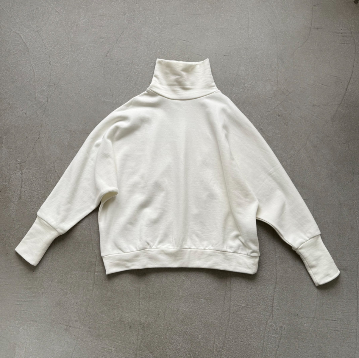 ふんわり程良い肉厚感のあるコットンのハイネックプルオーバー。裏側はパイル地で1枚で暖かくご着用いただけます。