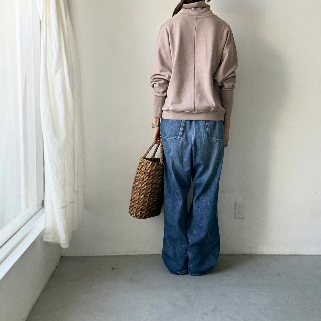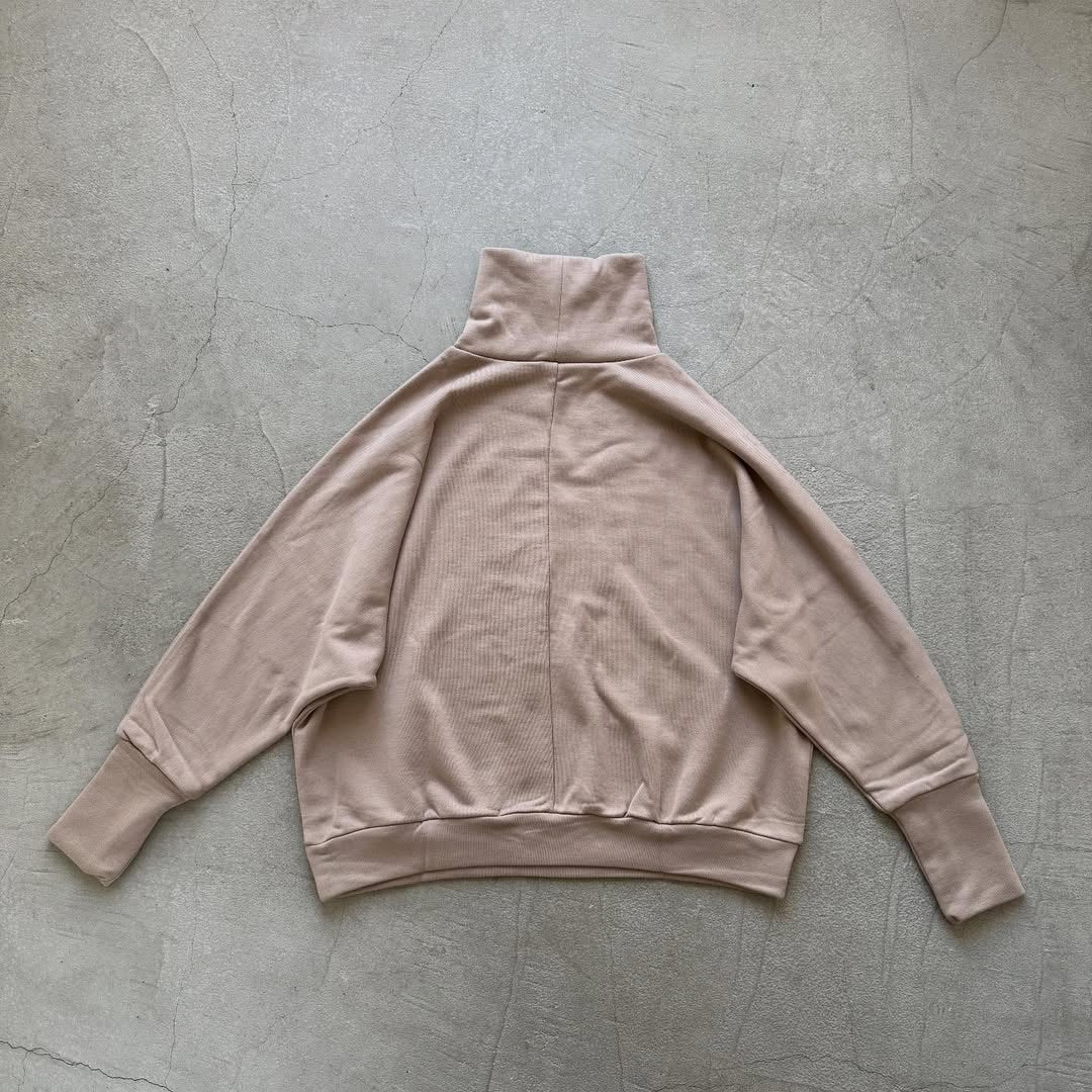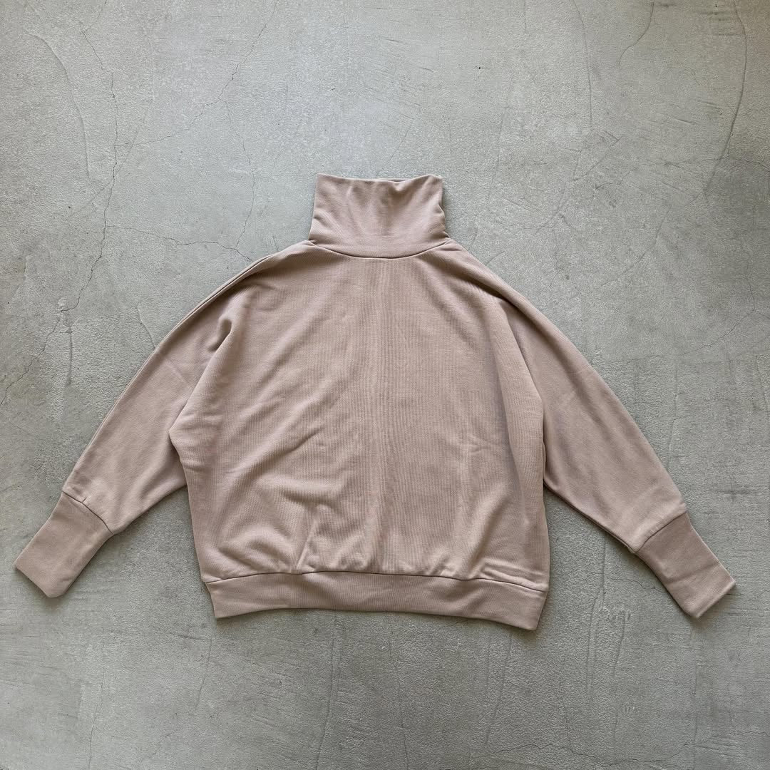 ふんわり程良い肉厚感のあるコットンのハイネックプルオーバー。裏側はパイル地で1枚で暖かくご着用いただけます。