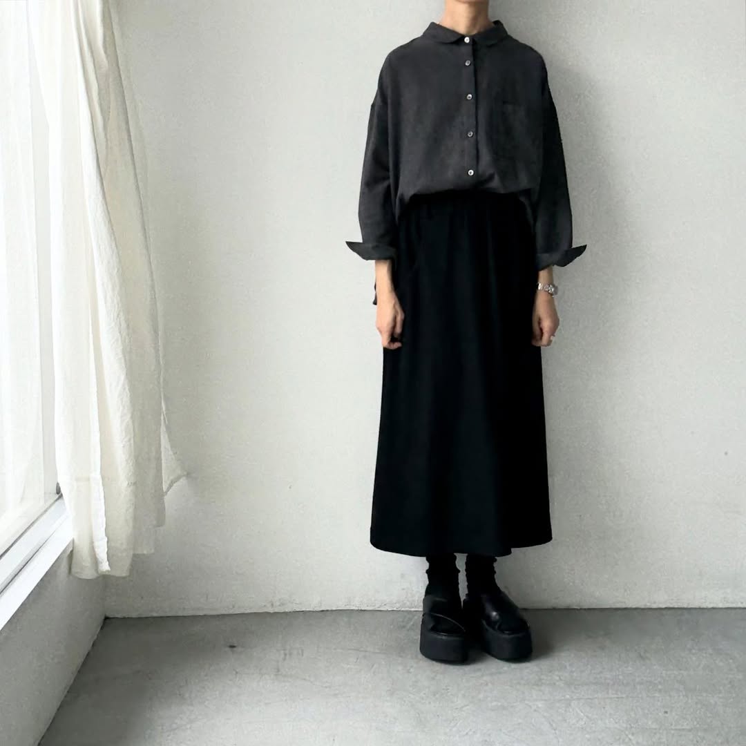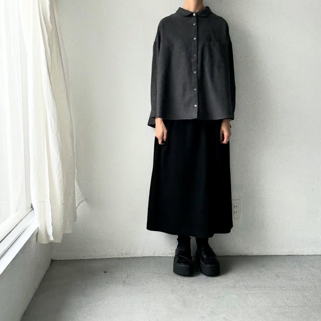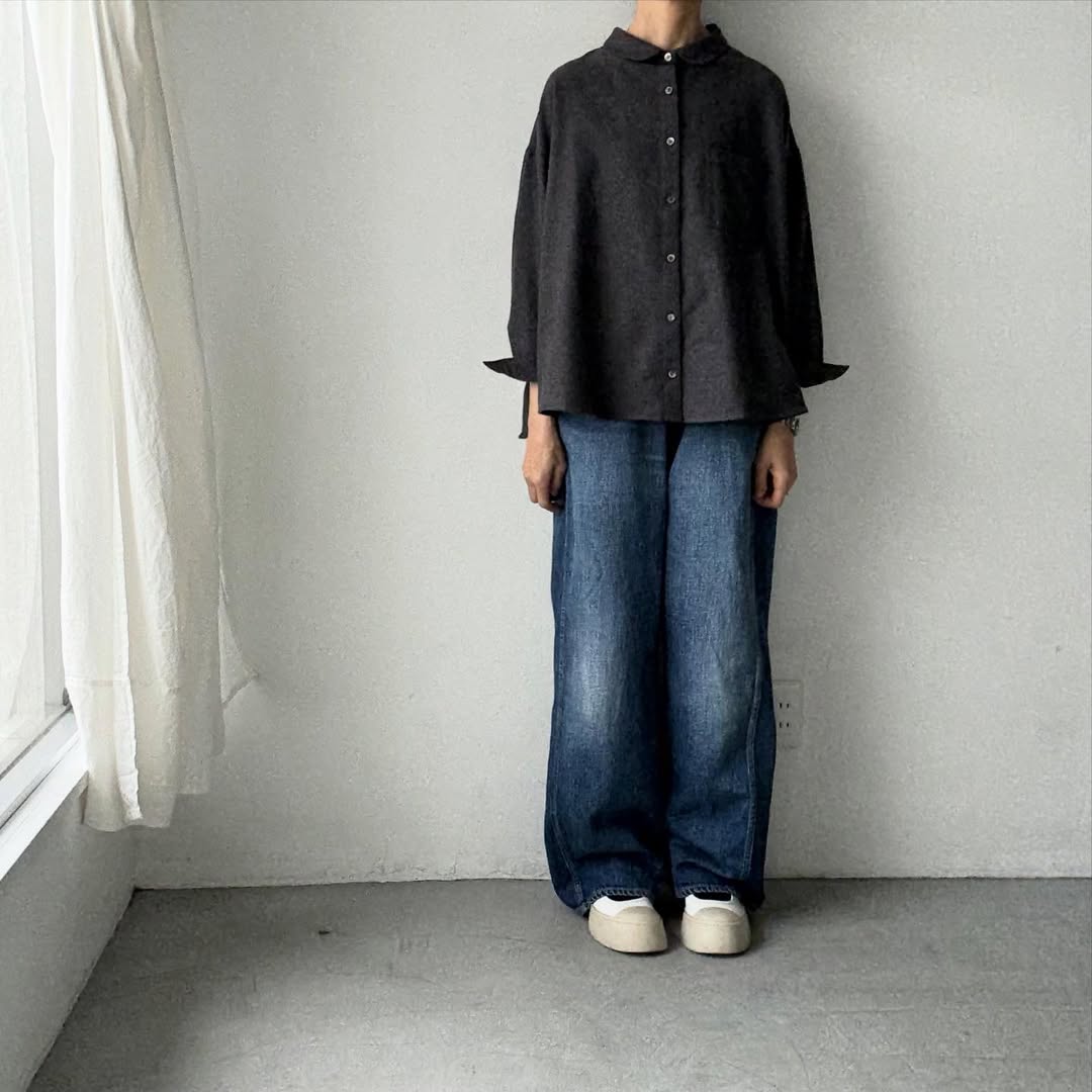 上から1〜2個開けて襟を抜くような着用もリラックス感のある大人びた印象になり素敵です。