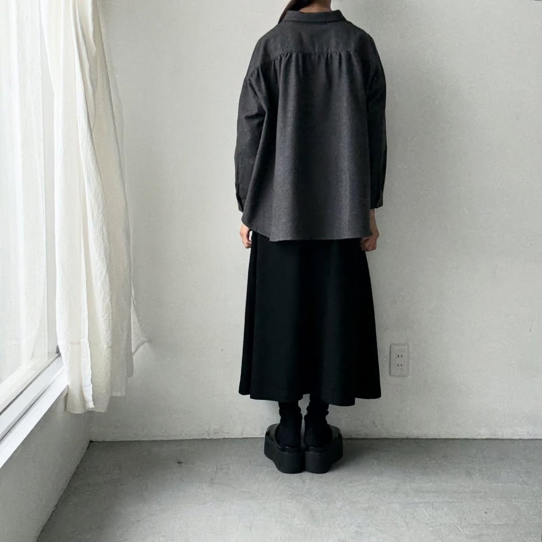 後ろ見頃には切替下にギャザーが施されていて後ろ姿も素敵。