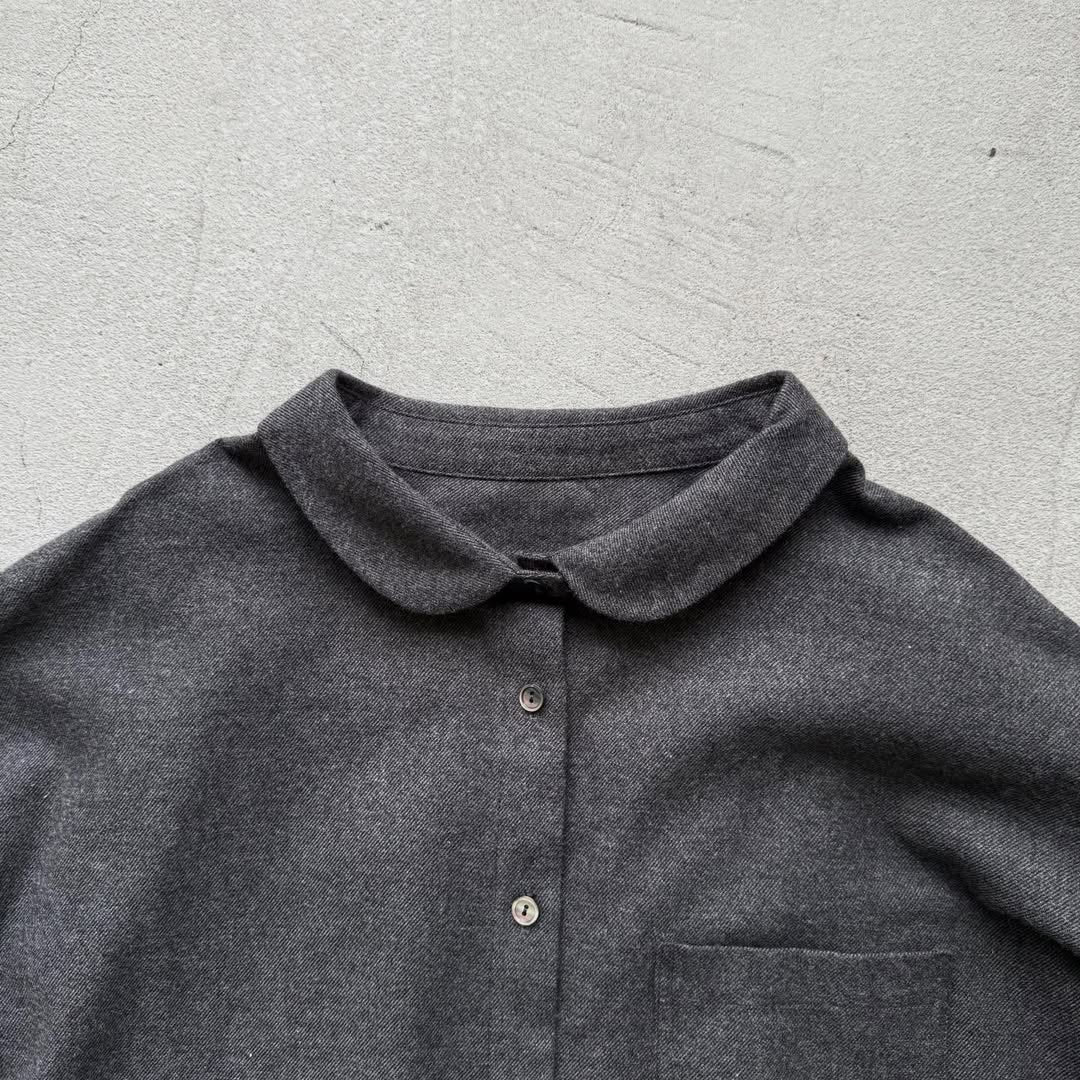 小さくてフラットな丸襟は、首周りに余裕があり、一番上までボタンを閉じても苦しくないように設計されています。閉じて着用するとノスタルジックで可愛い印象に。