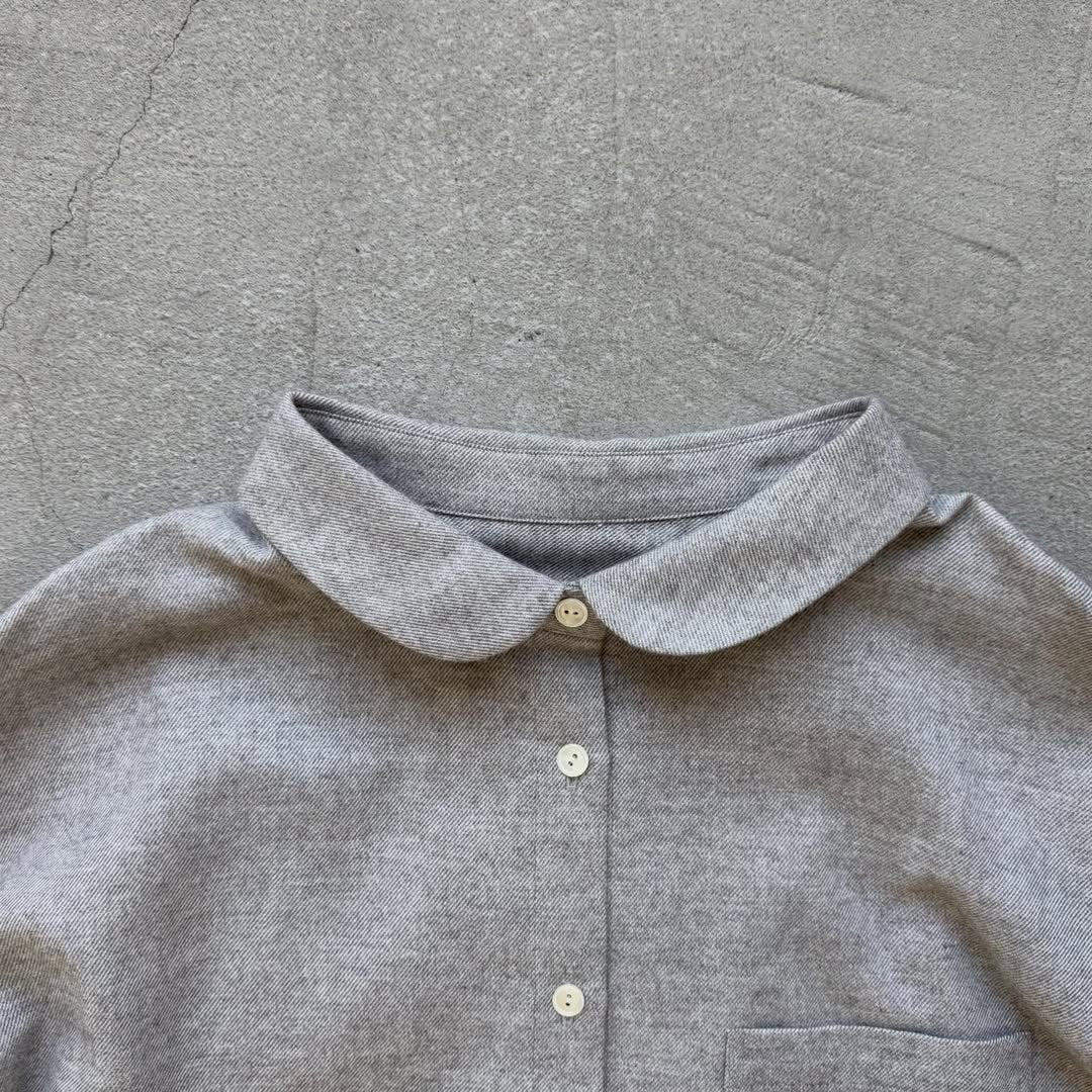 小さくてフラットな丸襟は、首周りに余裕があり、一番上までボタンを閉じても苦しくないように設計されています。閉じて着用するとノスタルジックで可愛い印象に。
