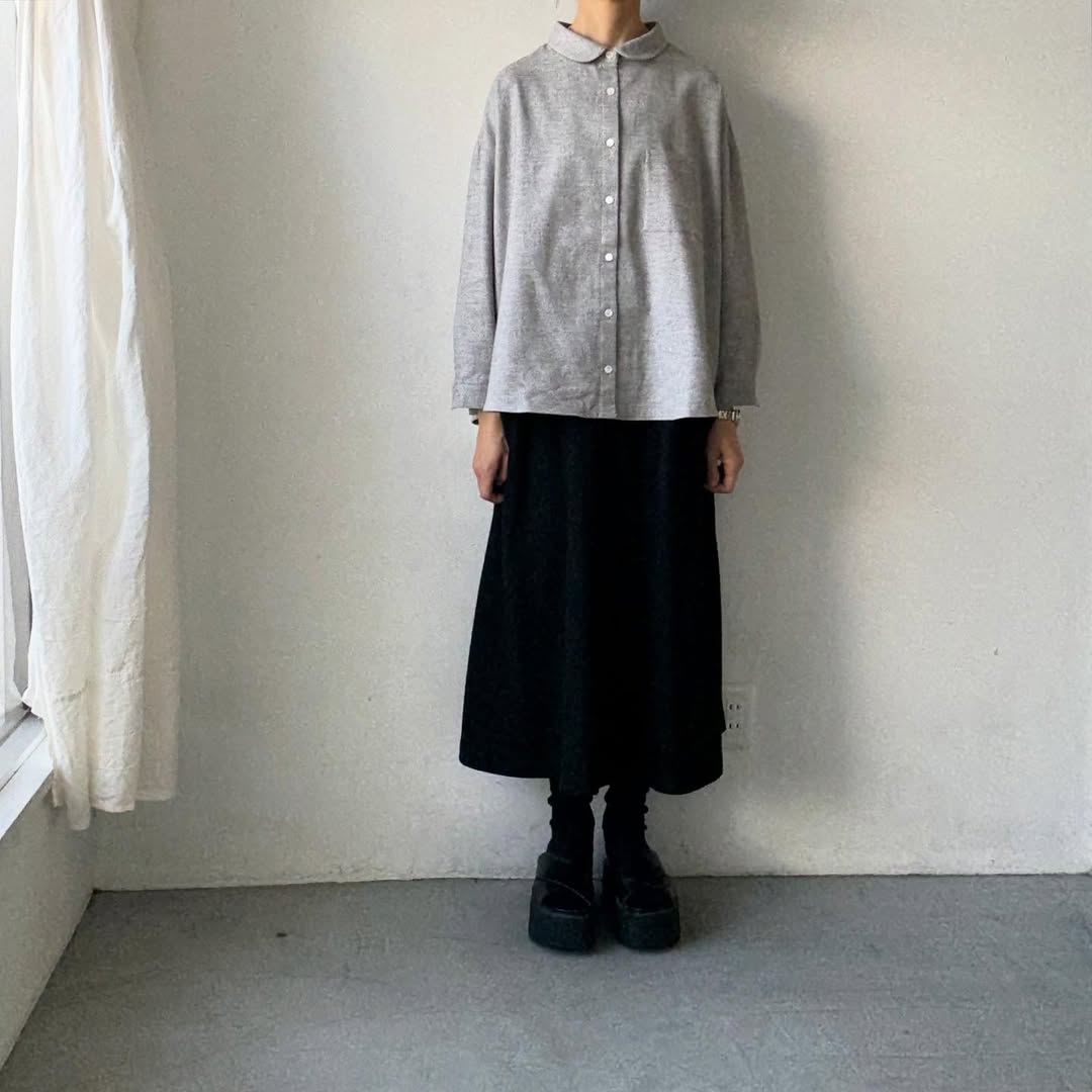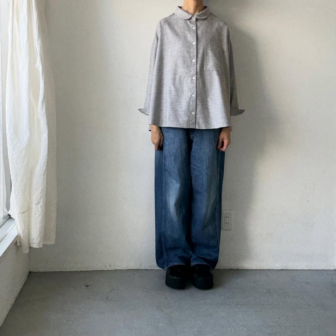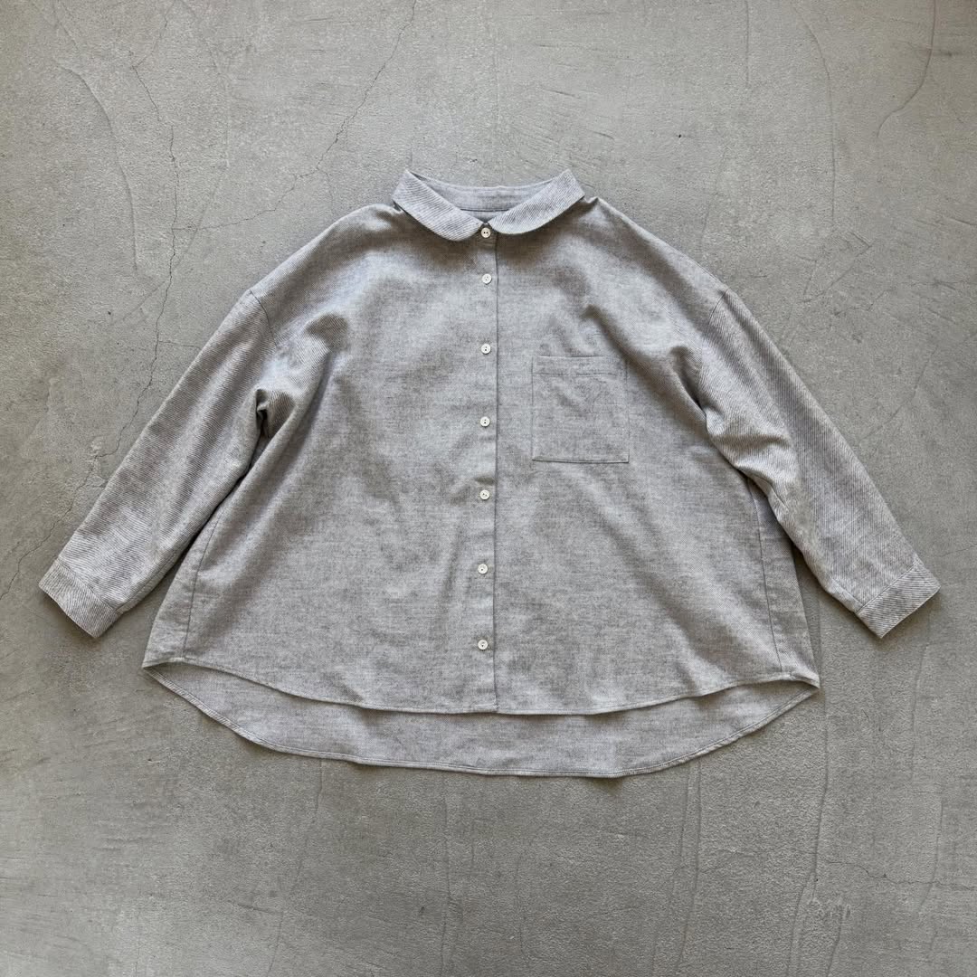 コットンヤク丸襟長袖ブラウス。