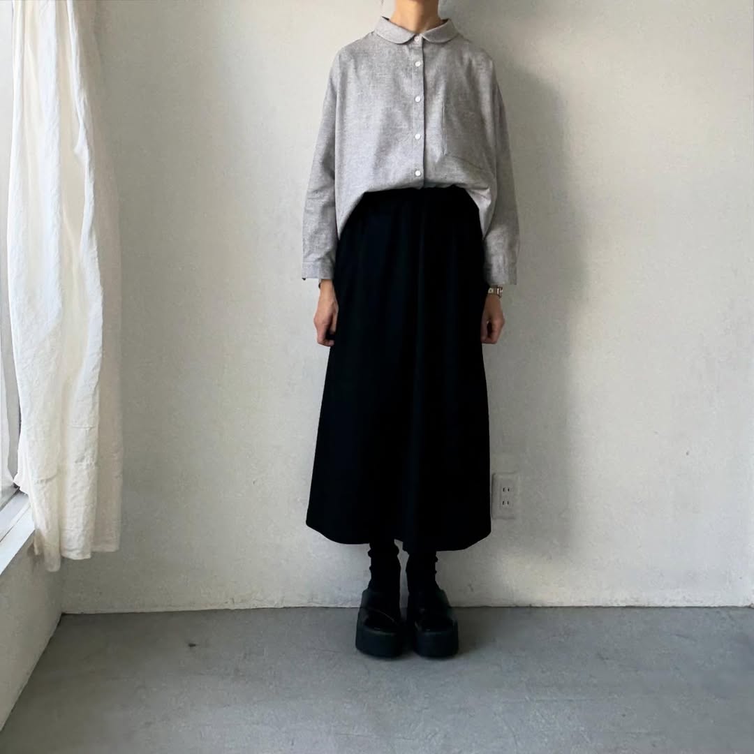 今回の丸襟ブラウスの着丈はスタンダードな長さ。