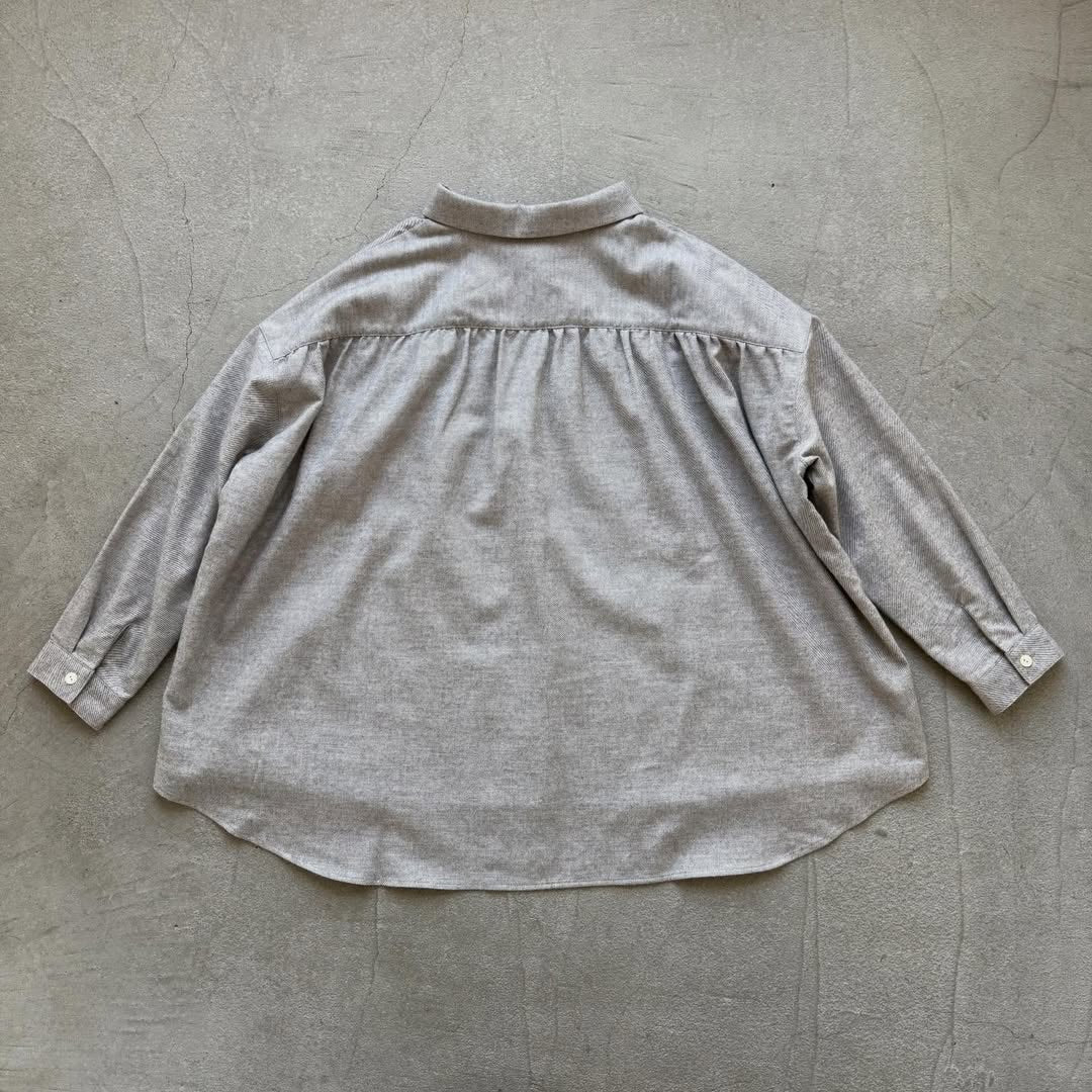 size F 肩幅60 身幅前67 後ろ86(ギャザー) 着丈前63 後ろ69 袖丈43 首周り内寸47