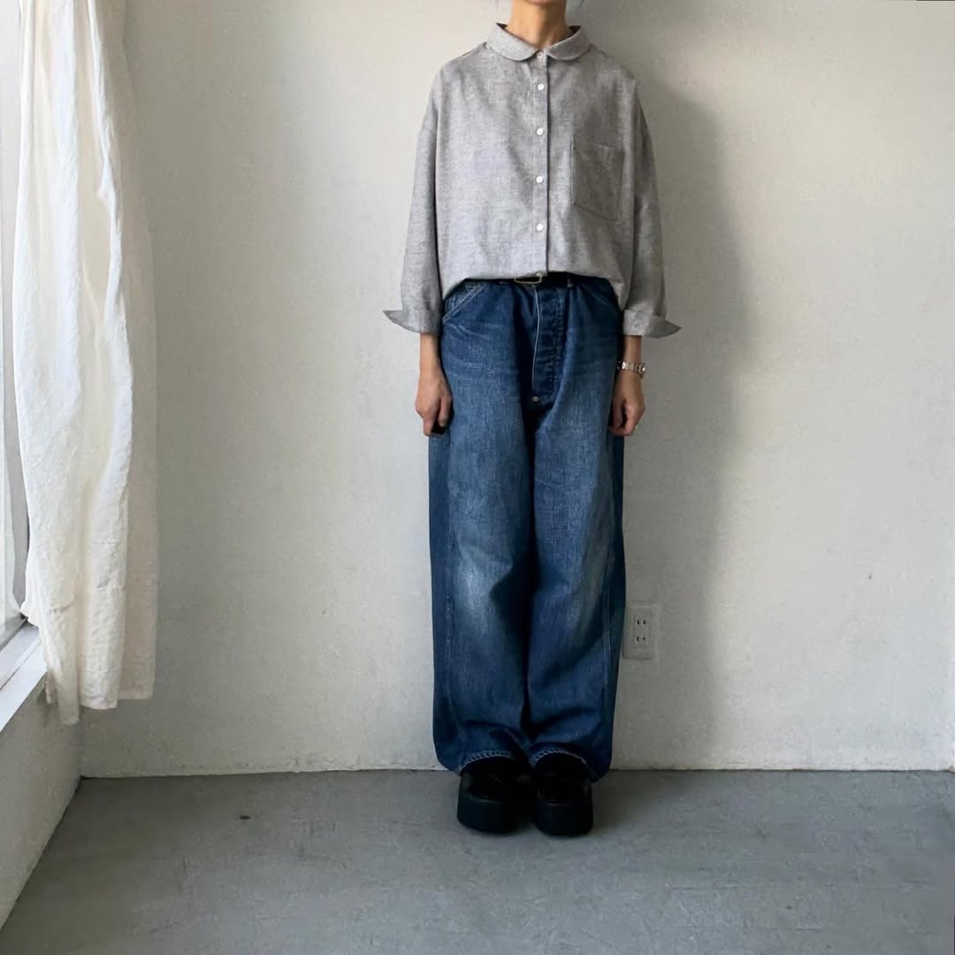 上から1〜2個開けて襟を抜くような着用もリラックス感のある大人びた印象になり素敵です。