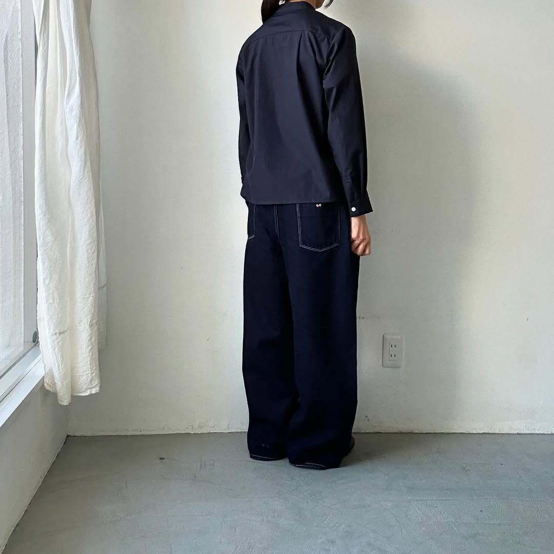 深いナス紺色がブラックと合わせても色が沈まず発色し、モードな印象で素敵です。