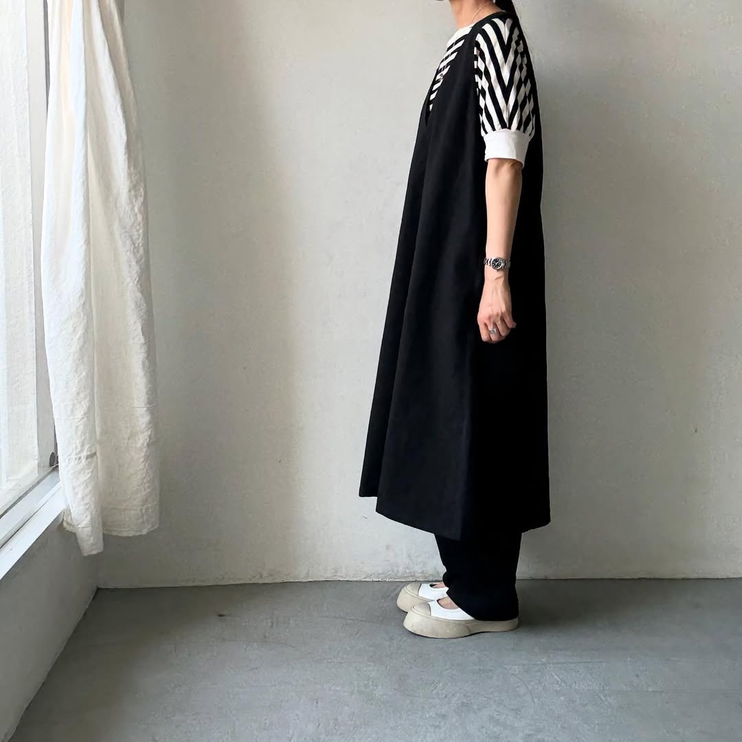 ワンピースとして着用はもちろん、パンツをレイヤードするコーディネートもおすすめです。