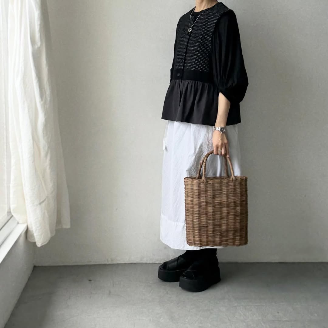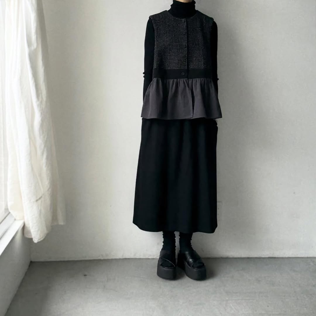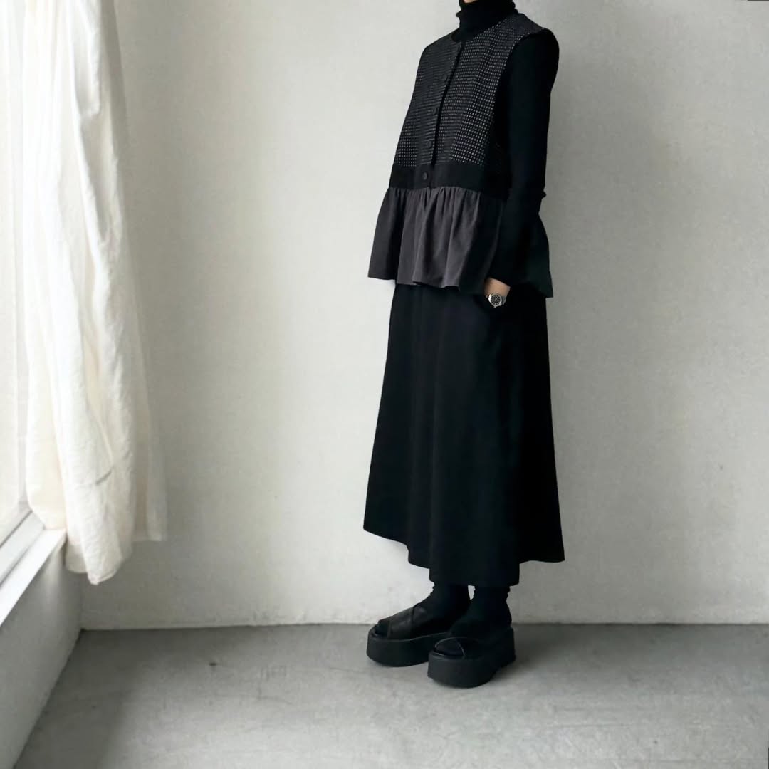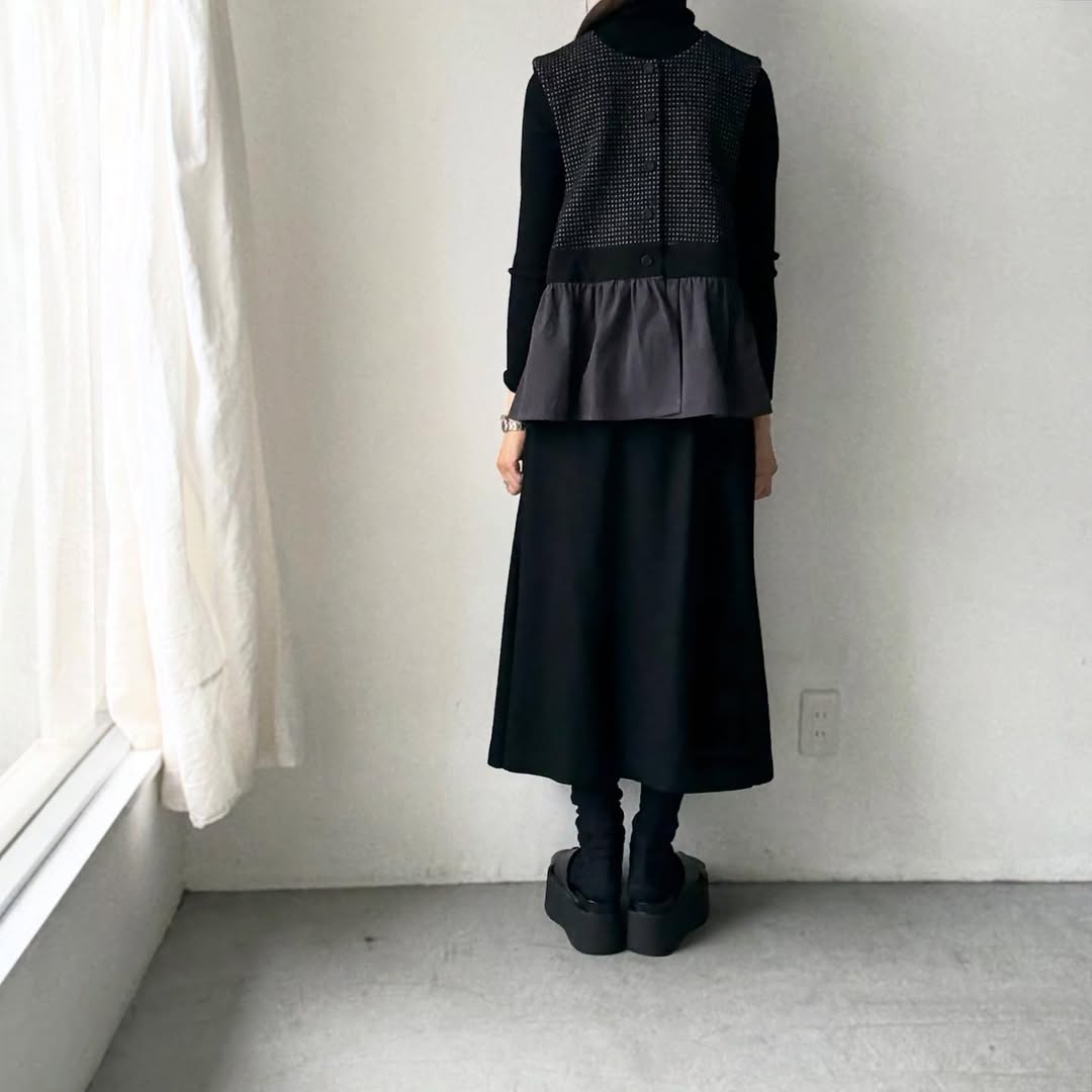 シンプルなパンツやスカートに合わせたい雰囲気のあるベストです。