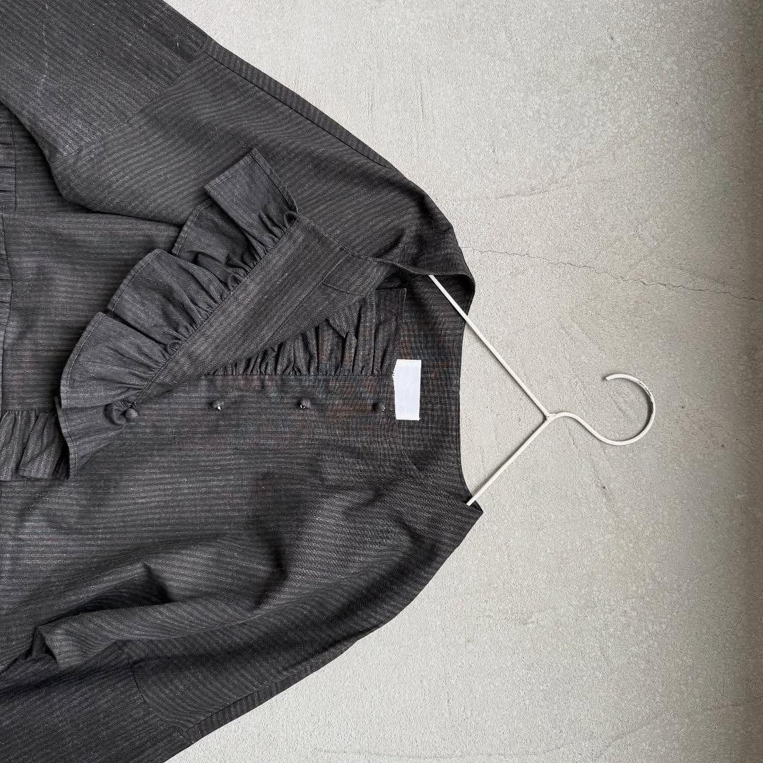 表裏墨染めのストライプコットンリネン。中厚地の風合い豊かな生地です。