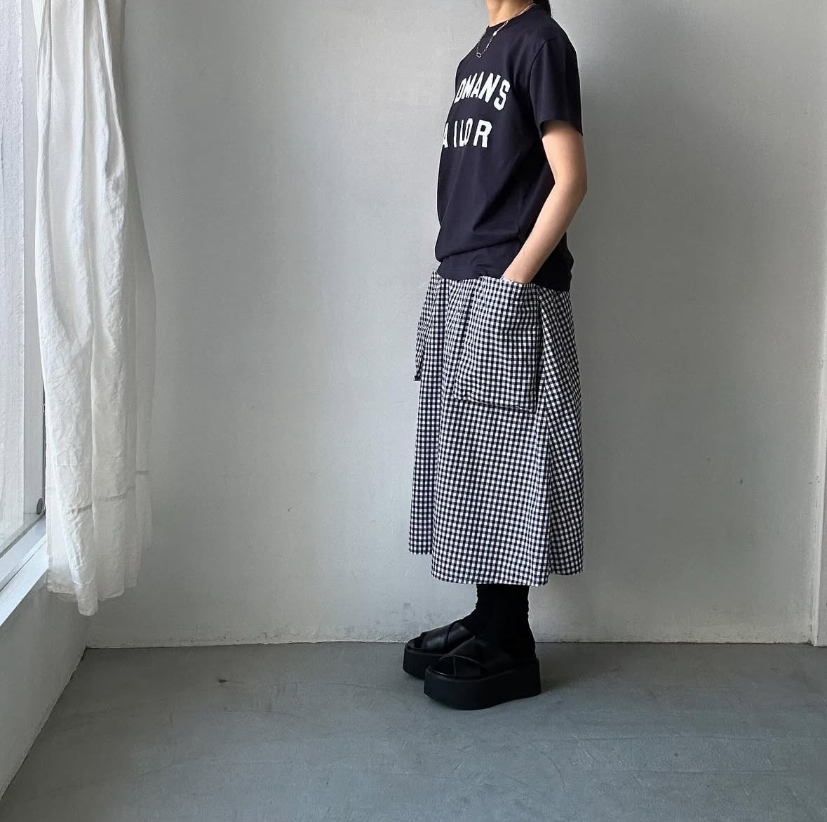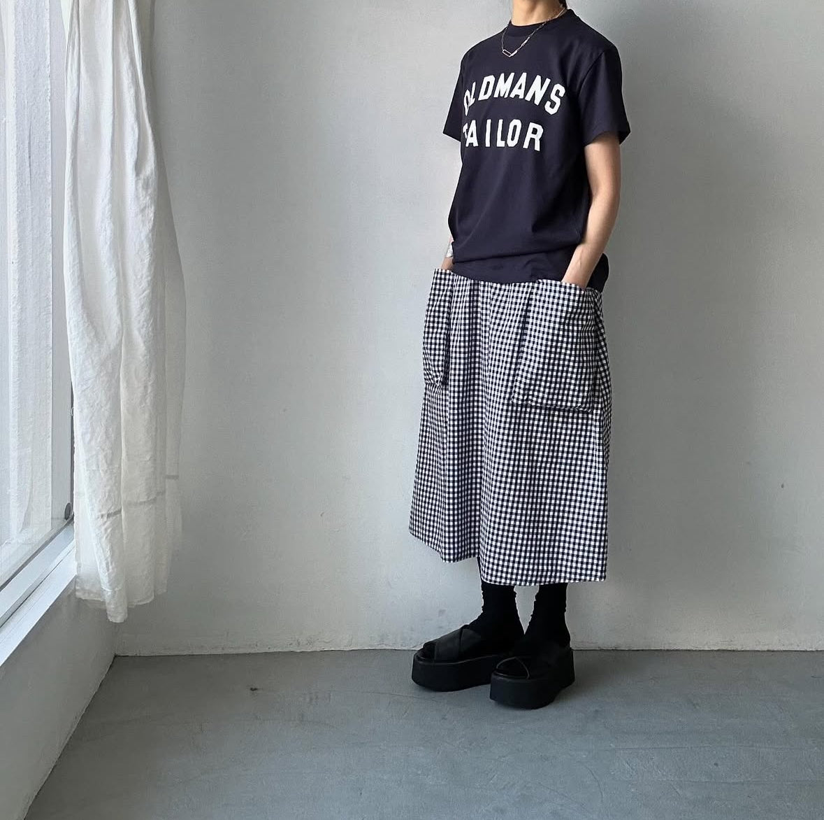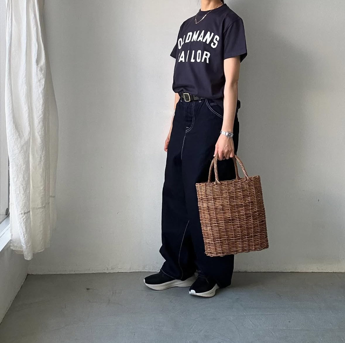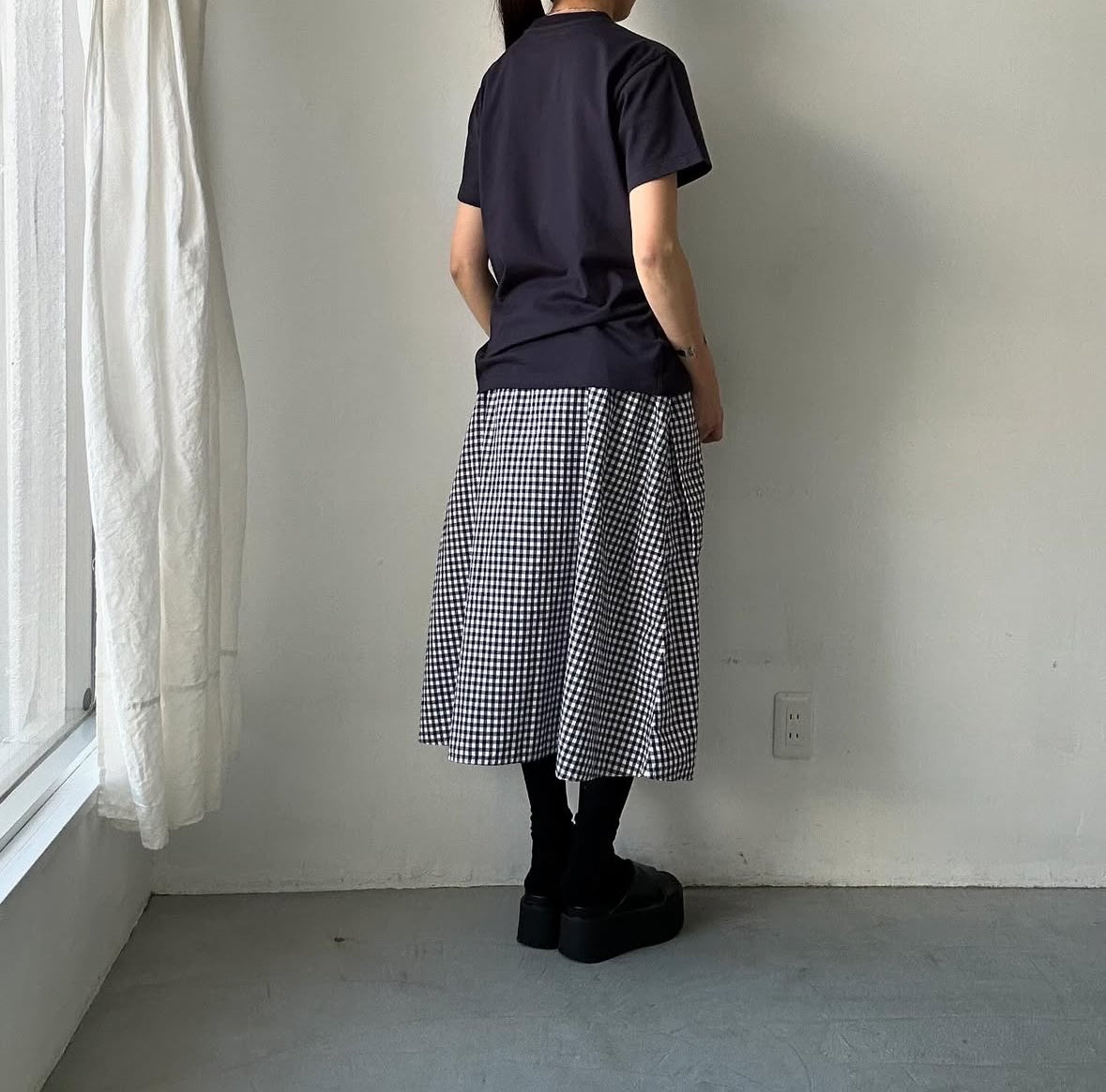しっかりめのなめらかな生地で体の線を拾い難く、でもゴワゴワ分厚くなく着心地が良いTシャツです。1枚でサラッと着られます。
