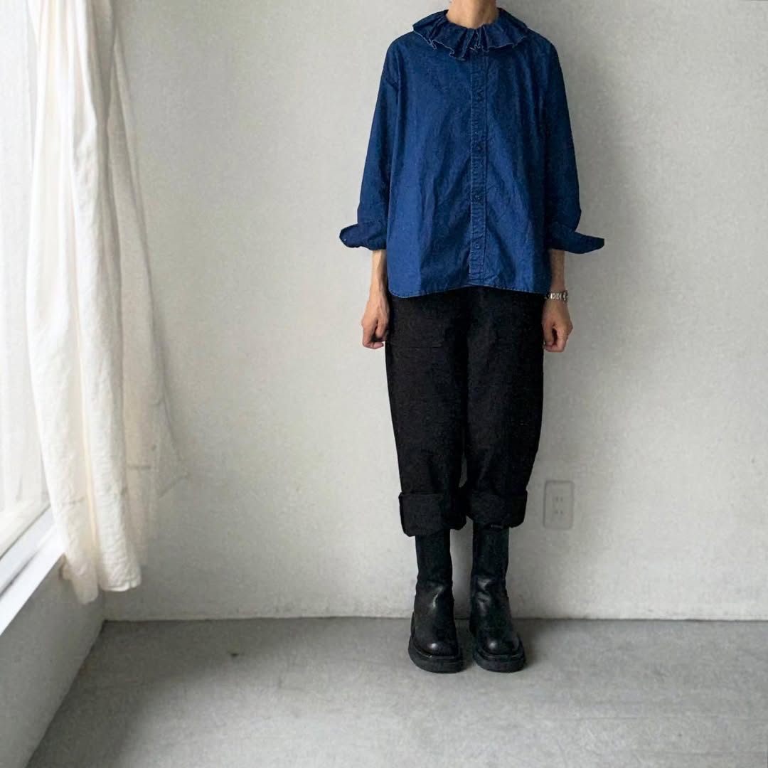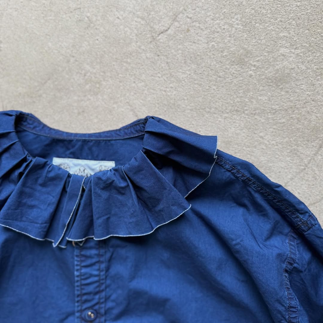 R&D.M.Co インディゴブルーラッフルカラーブラウス