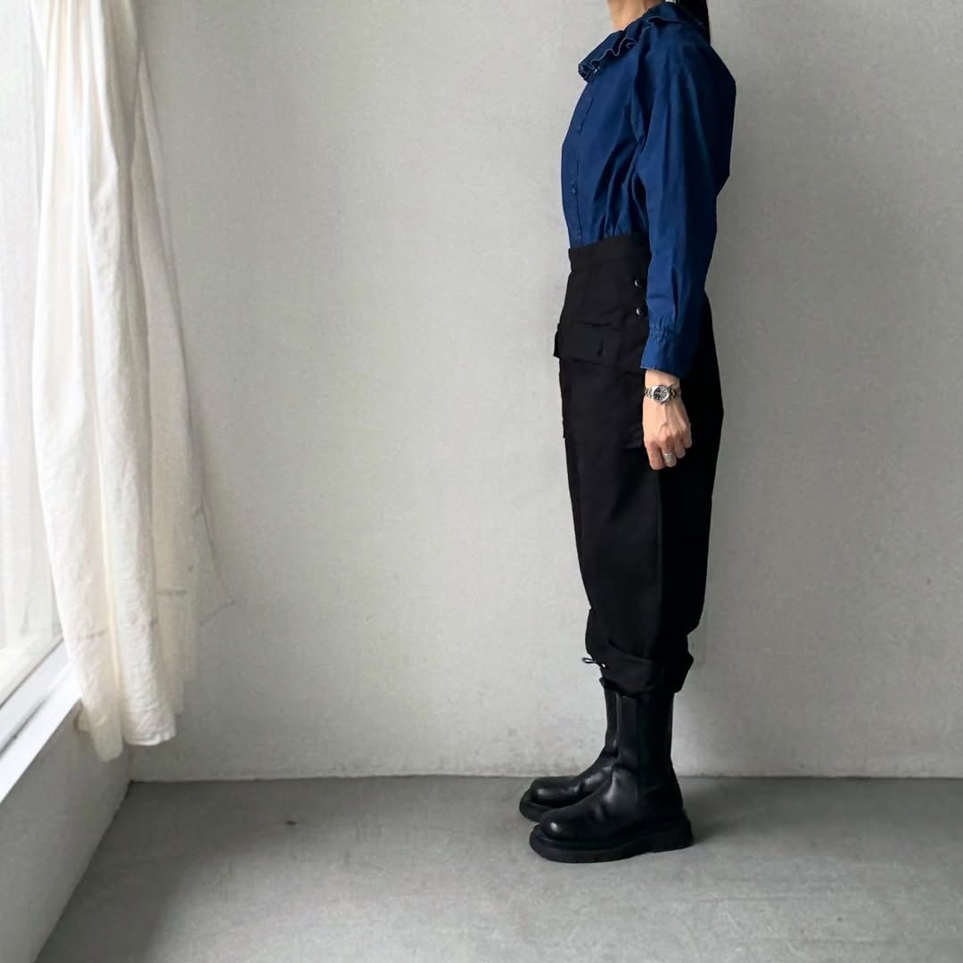 パンツにもスカートにも、ボトムインしてもしなくてもサマになるブラウスです。