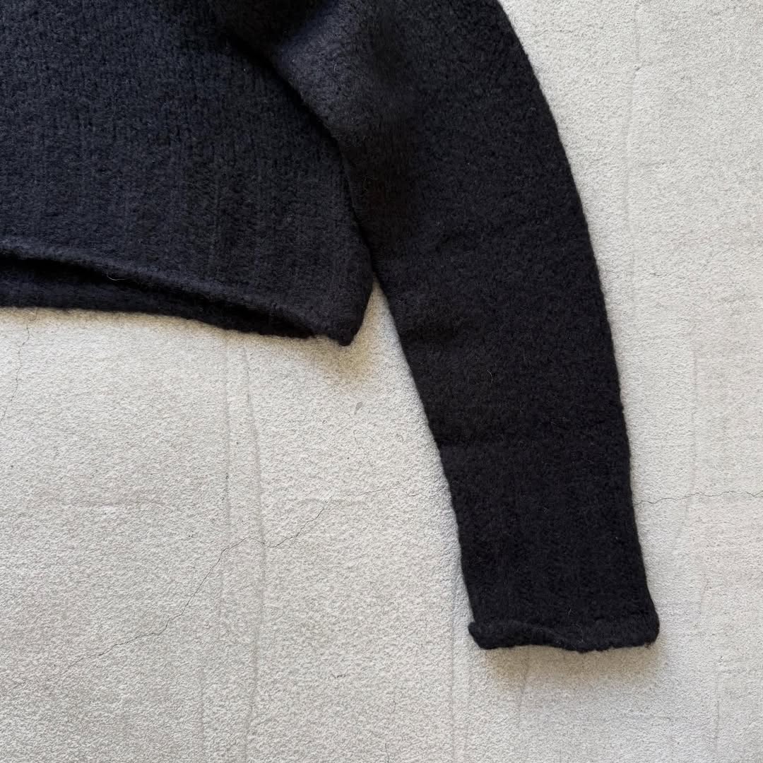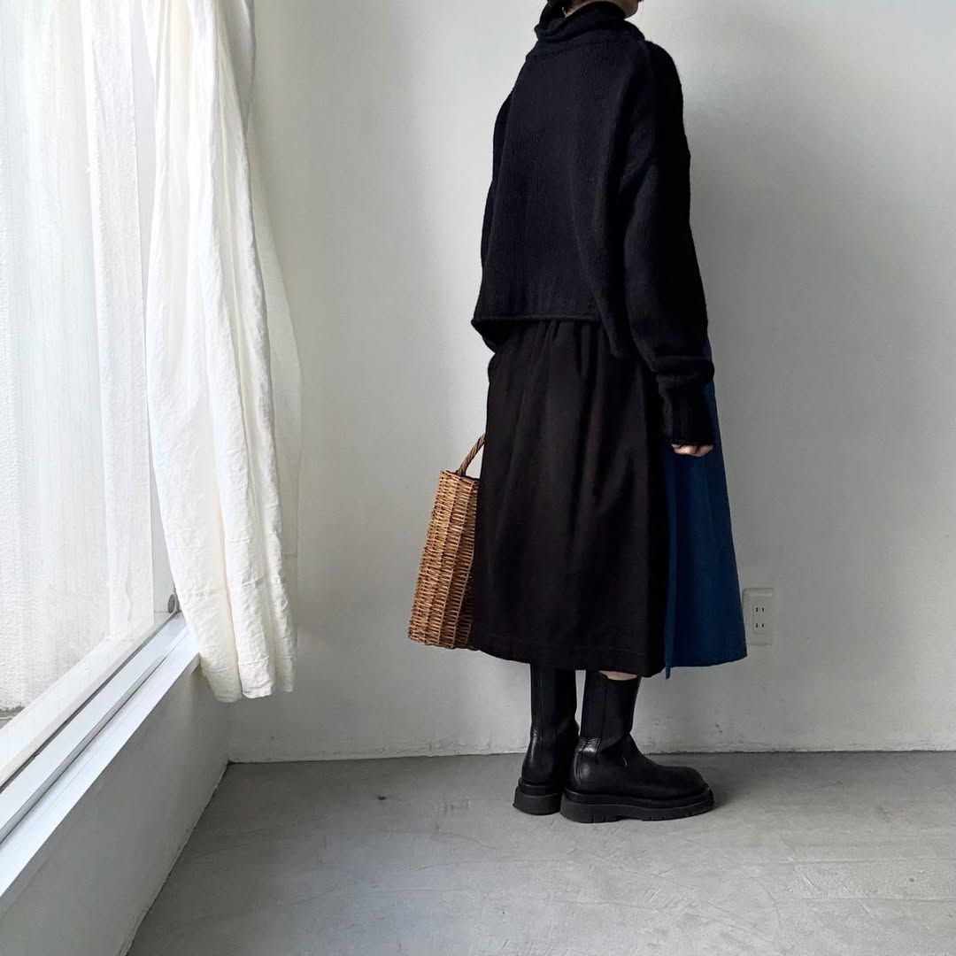 滑らかなウールとカシミア、ナイロンの混紡中太糸で編まれていて程よい肉厚感があります。