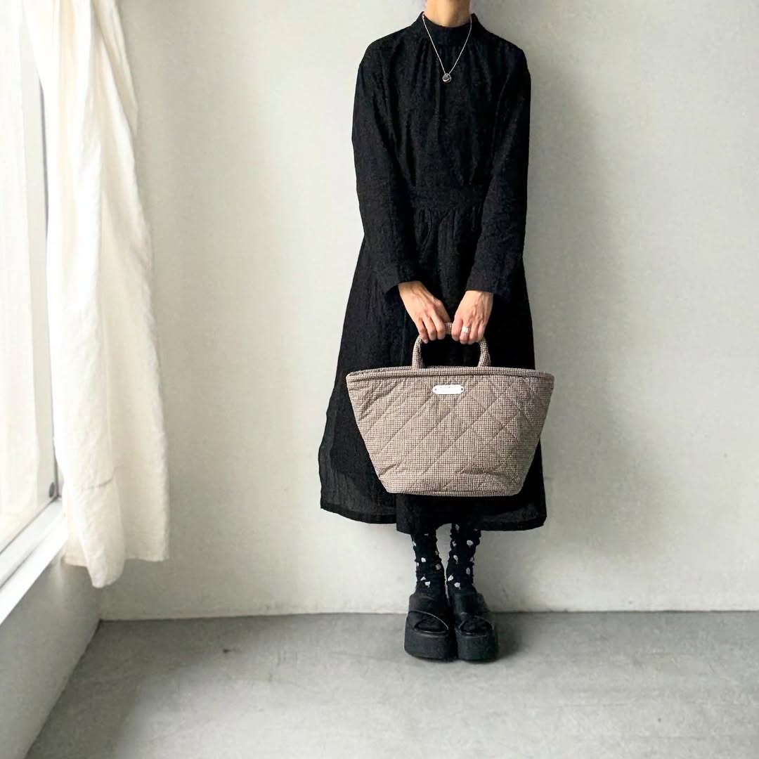 ガンクラブチェックのキルティング生地です。(内側も同じ柄です)