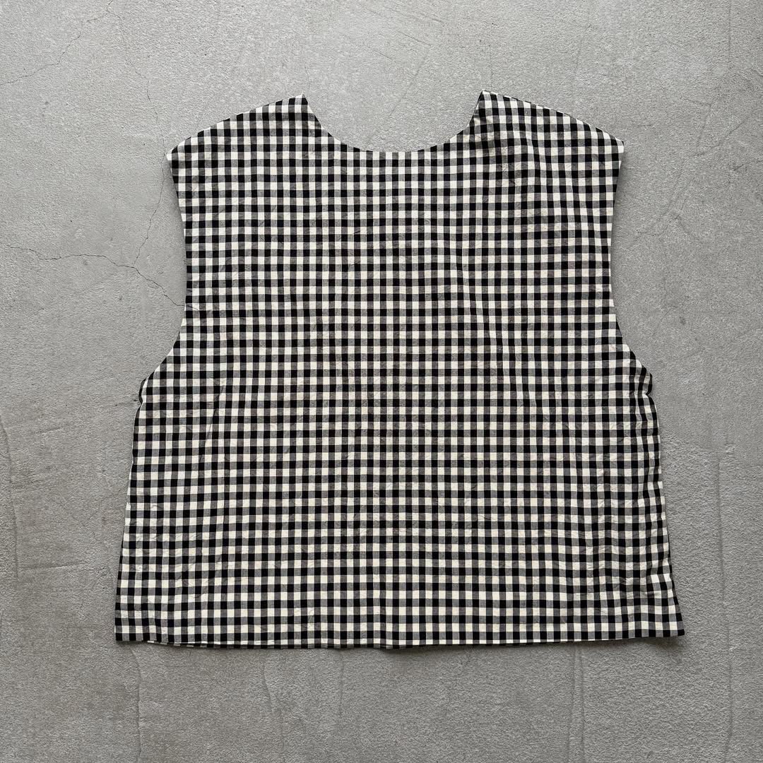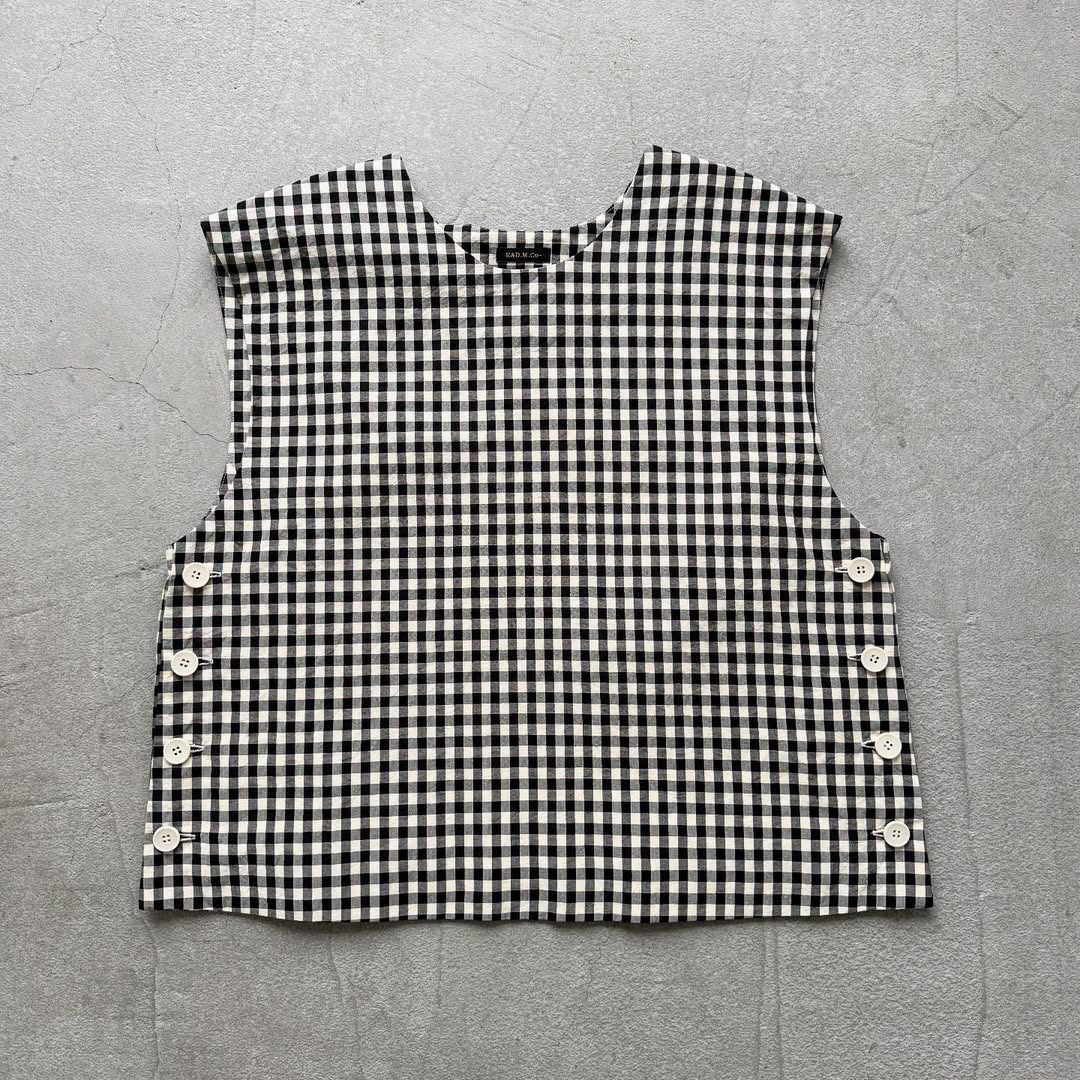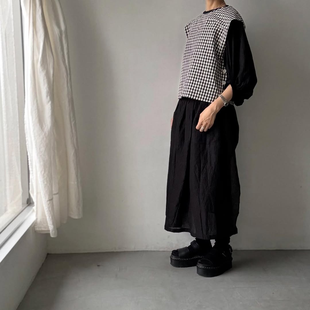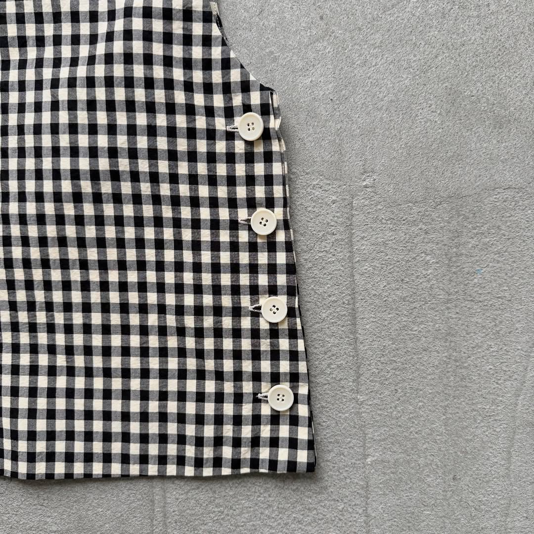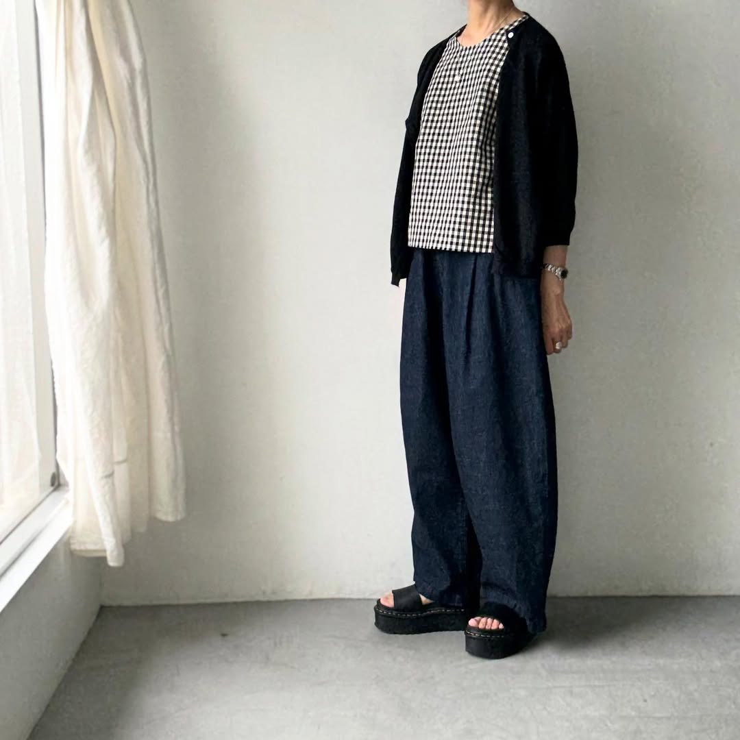 短め丈でゆるやかなAライン。スカートにもパンツにもコーディネートしやすいベストです。