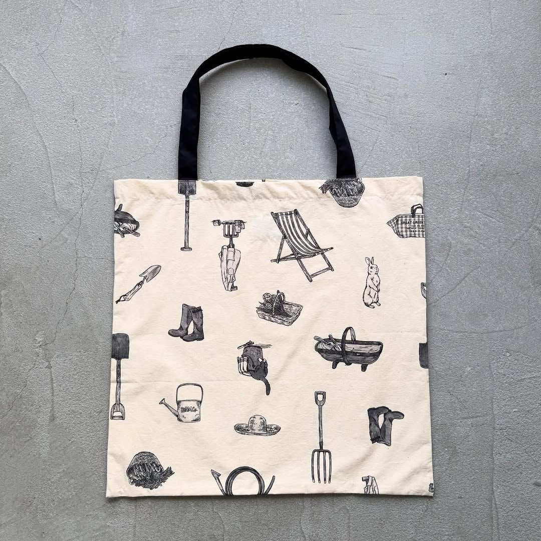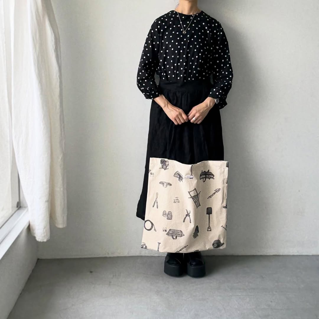 丈夫な生地感、大きな正方形。沢山荷物が入るのでサブバッグとしても安心感があります。