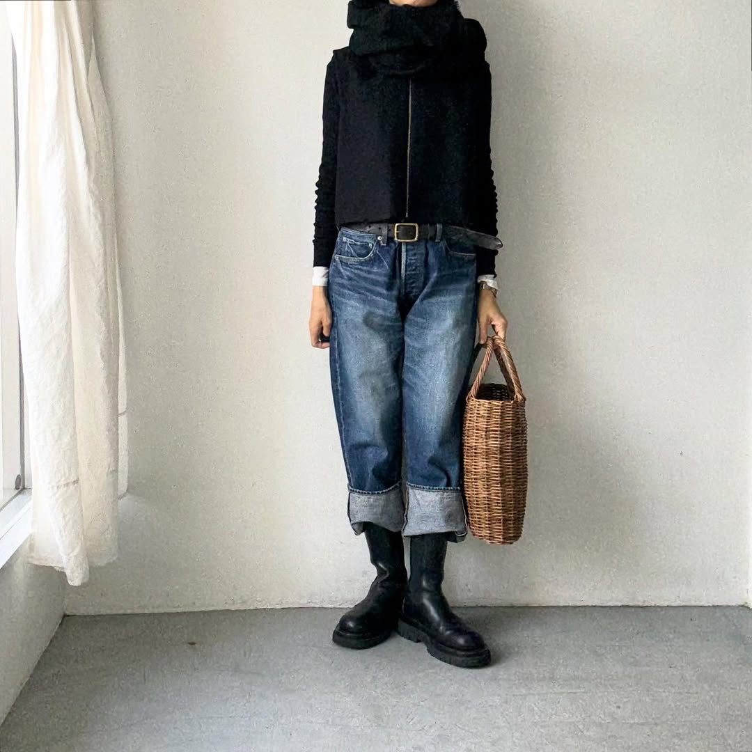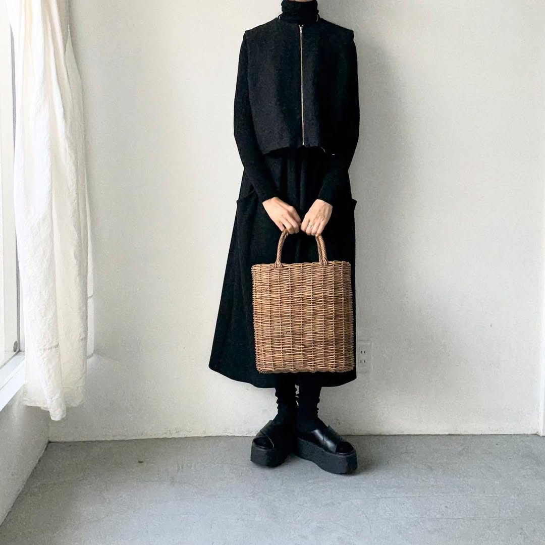 ブラックONブラックもおすすめ。オールブラックでも素材感が際立ちます。