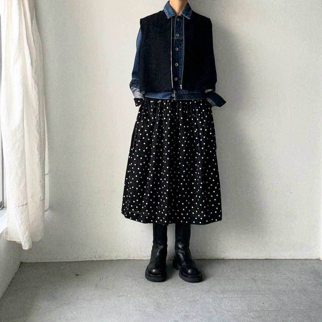 袖ぐりは広めなので中にジャストサイズのデニムジャケットを入れたりも出来ます。