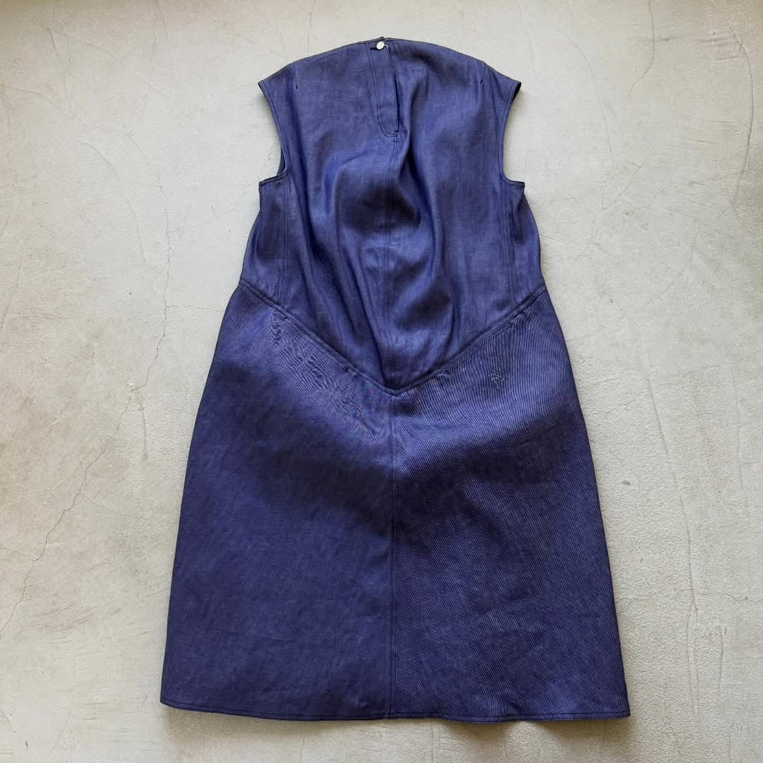 コットンデニムハンチドバックドレス。