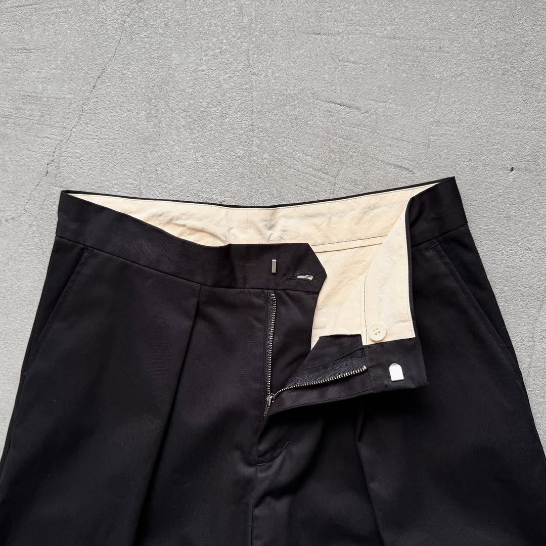 ほんのり光沢感のある上質なチノクロスを使ったガウチョパンツ。とても上品な印象です。