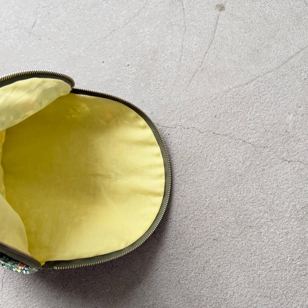 半円分、大きくファスナーで開きます。出し入れがしやすいポーチです。
