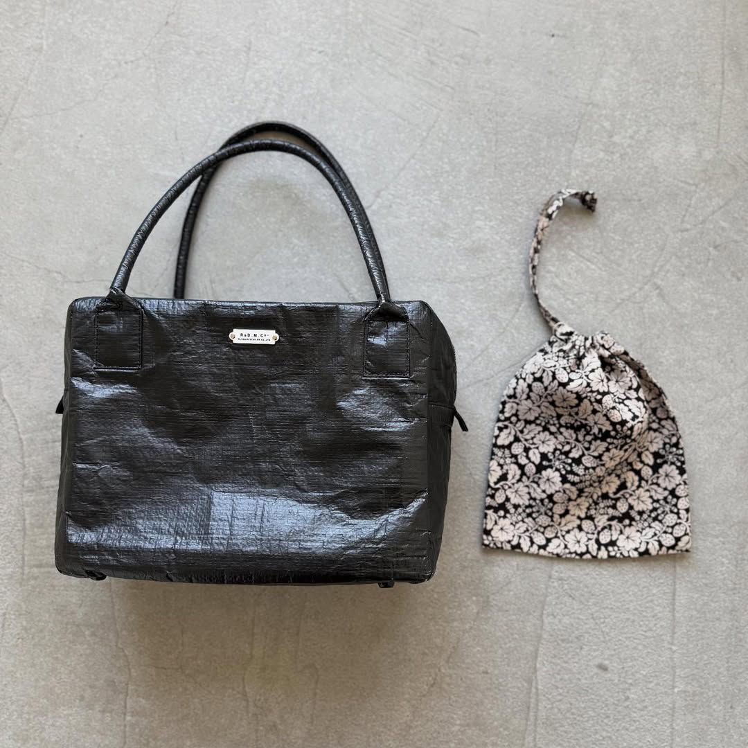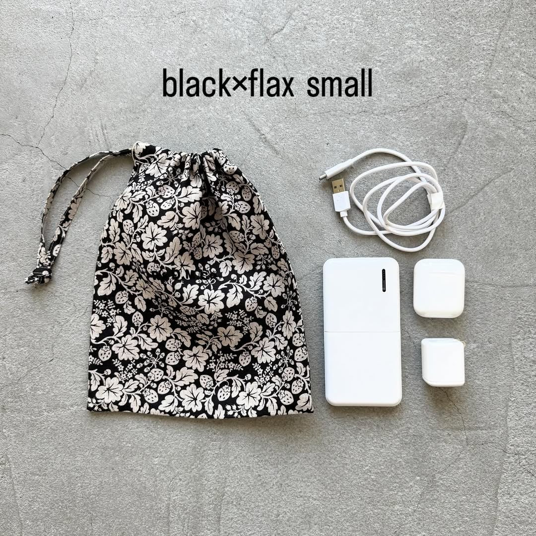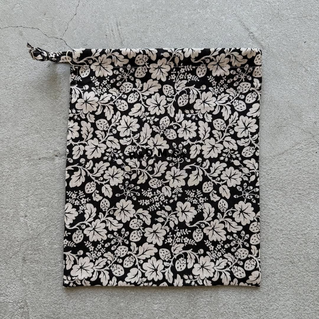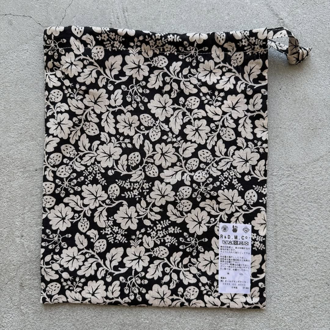 R&D.M.Co ワイルドベリーリネンドローストリングバッグスモール ブラック×フラックス