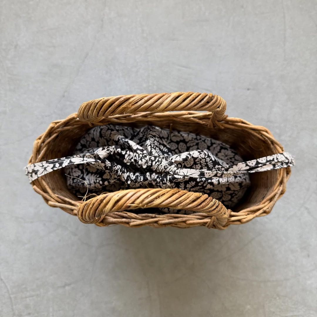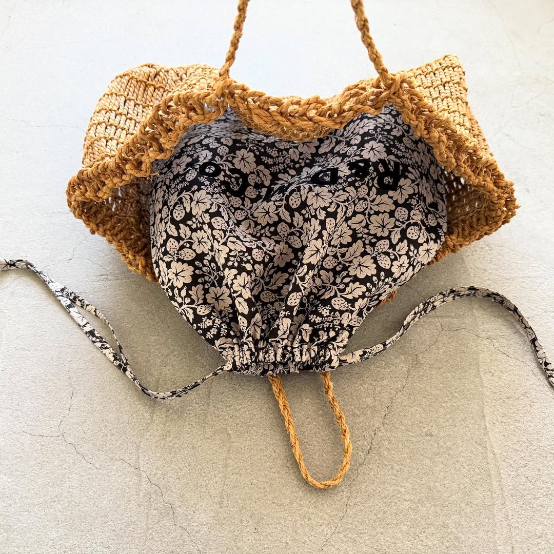 カゴバッグのインナーバッグにしたり、単体で持ったり。ストールやカーディガンを入れて出先での体温調節用のものを入れたり。