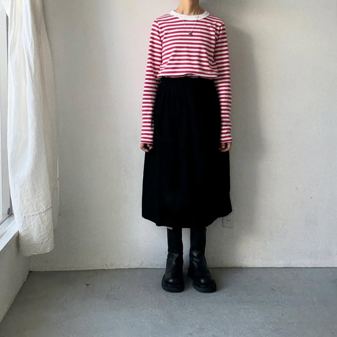 定番の裏起毛ボーダークルーネック長袖Tシャツ。
