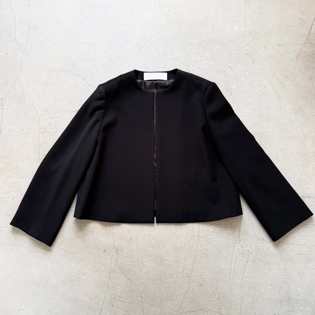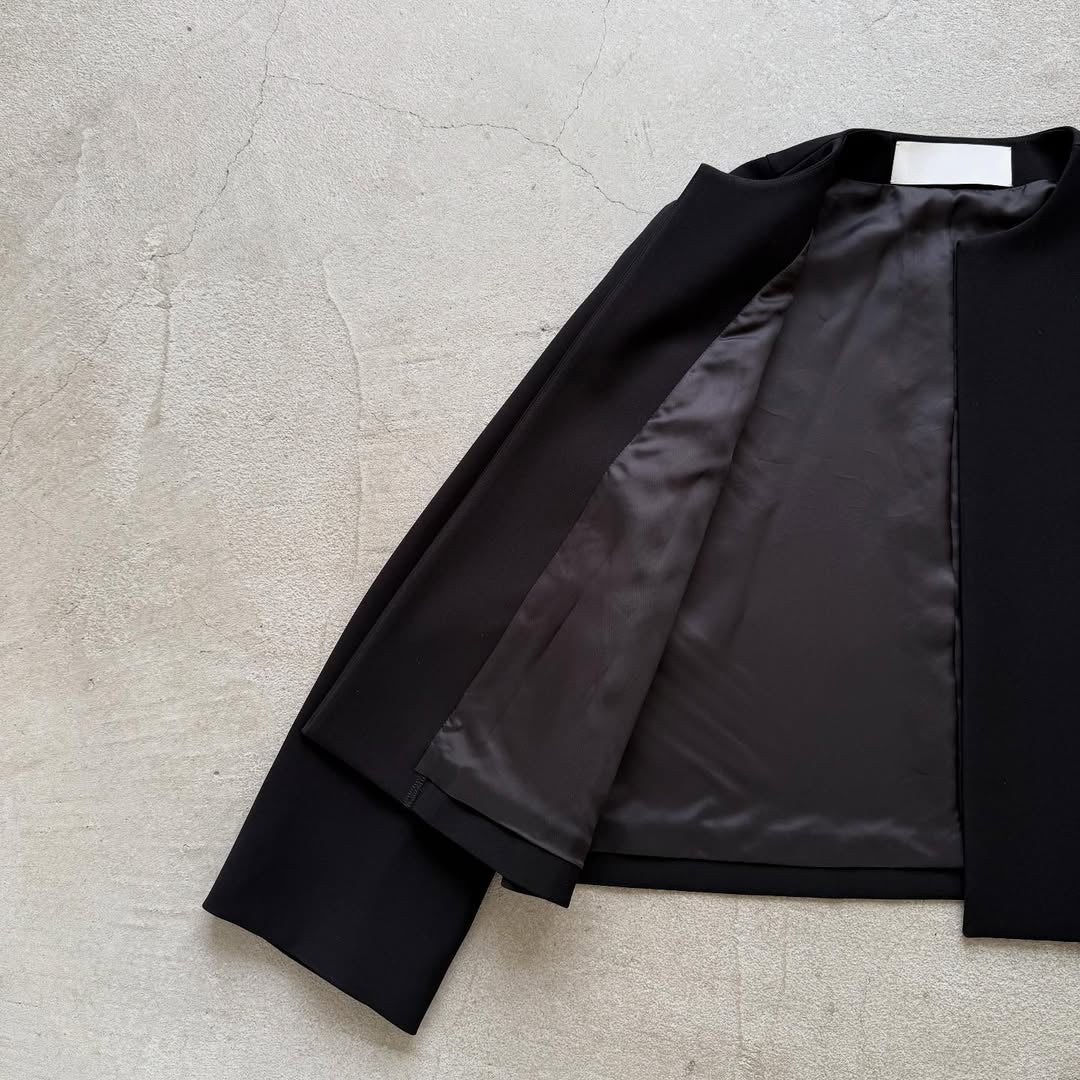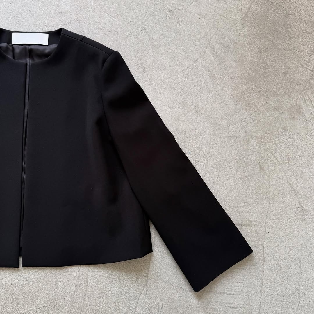 オールシーズン使えるノーカラージャケット。