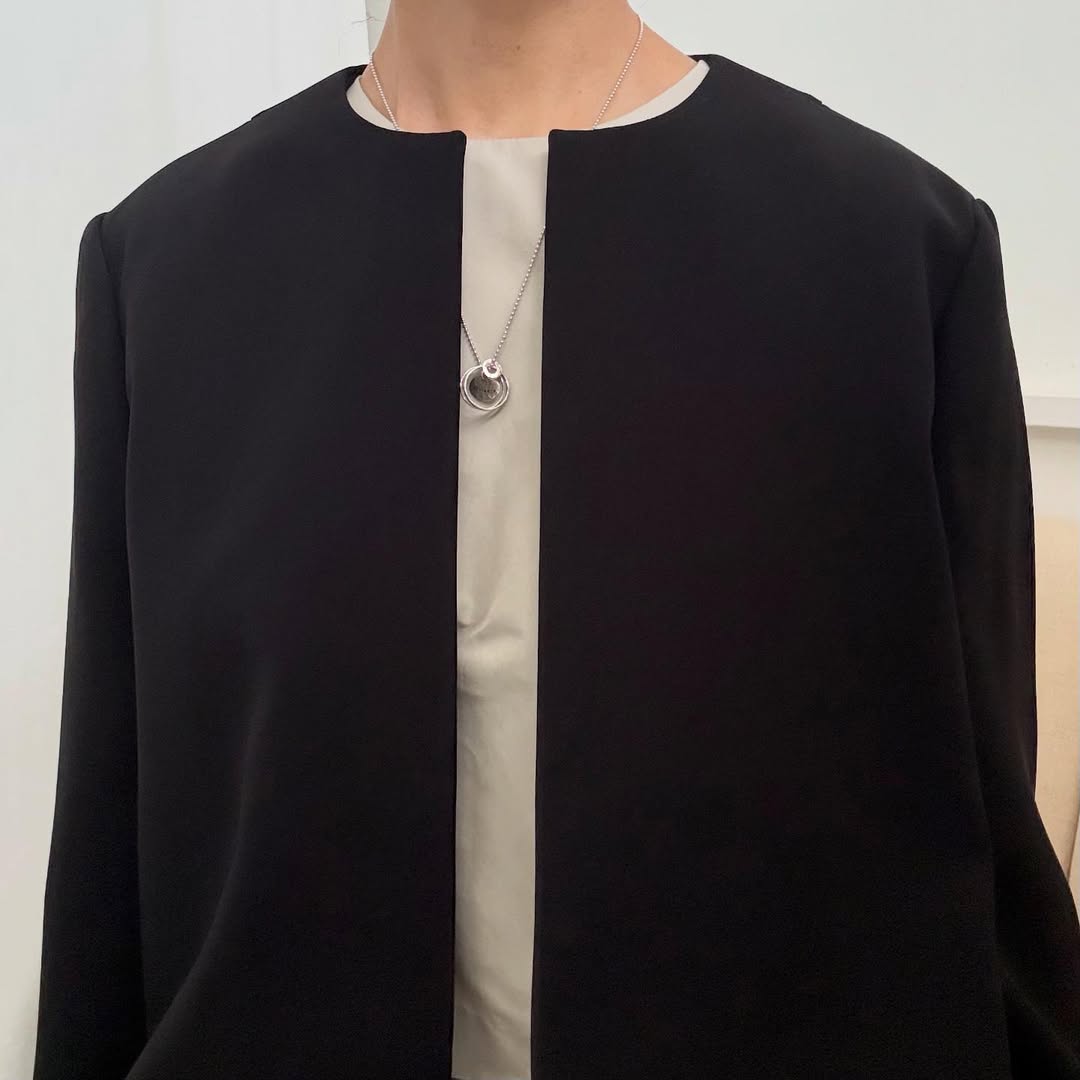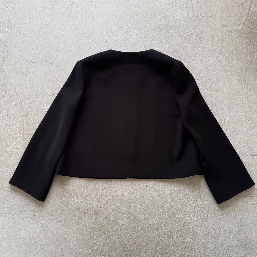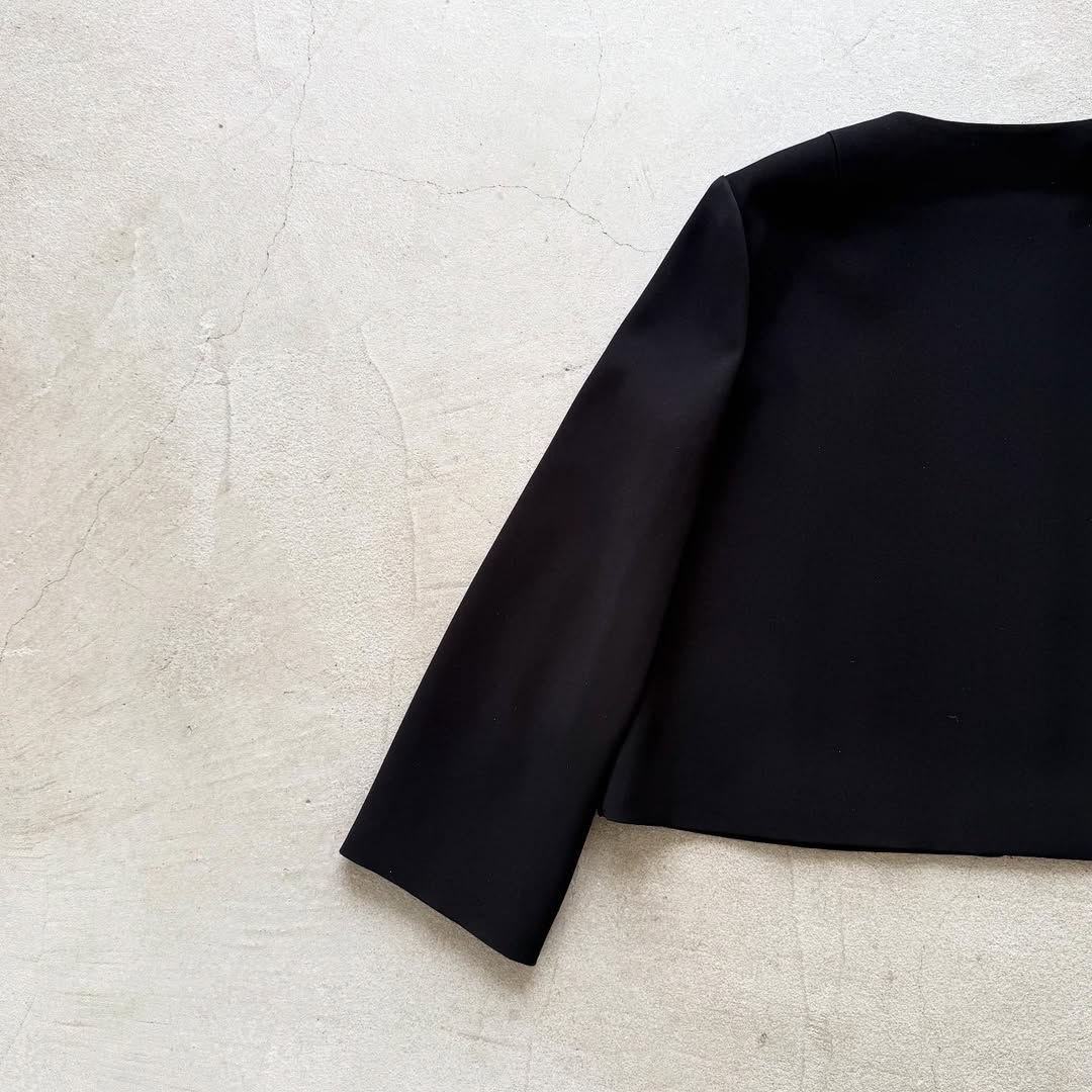 オールシーズン使えるノーカラージャケット。