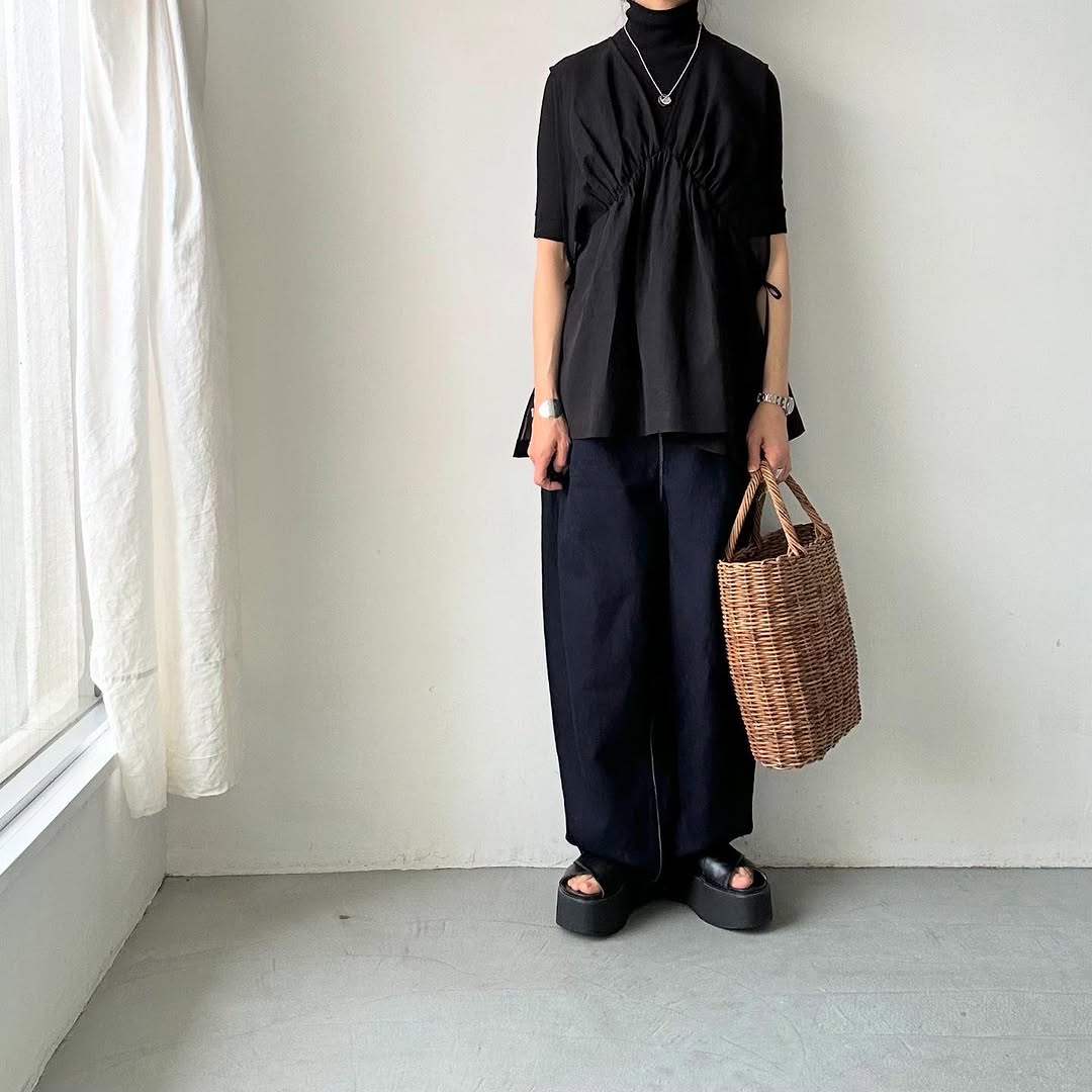 透け感を楽しむ服ですが、透け透け過ぎずに普通に合わせやすいです。白の上で目立たせても良いですし、黒い服や濃色の服に合わせるのもとてもおすすめ。