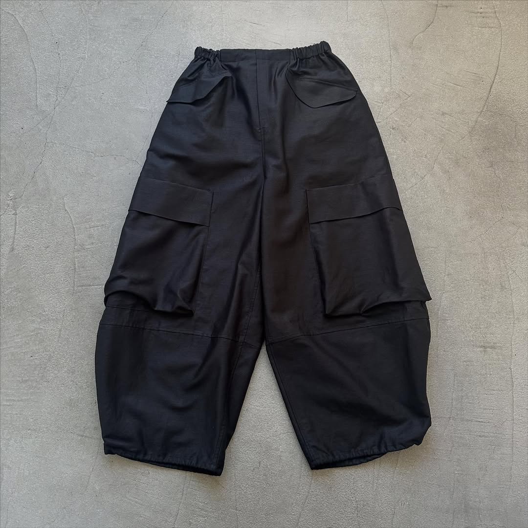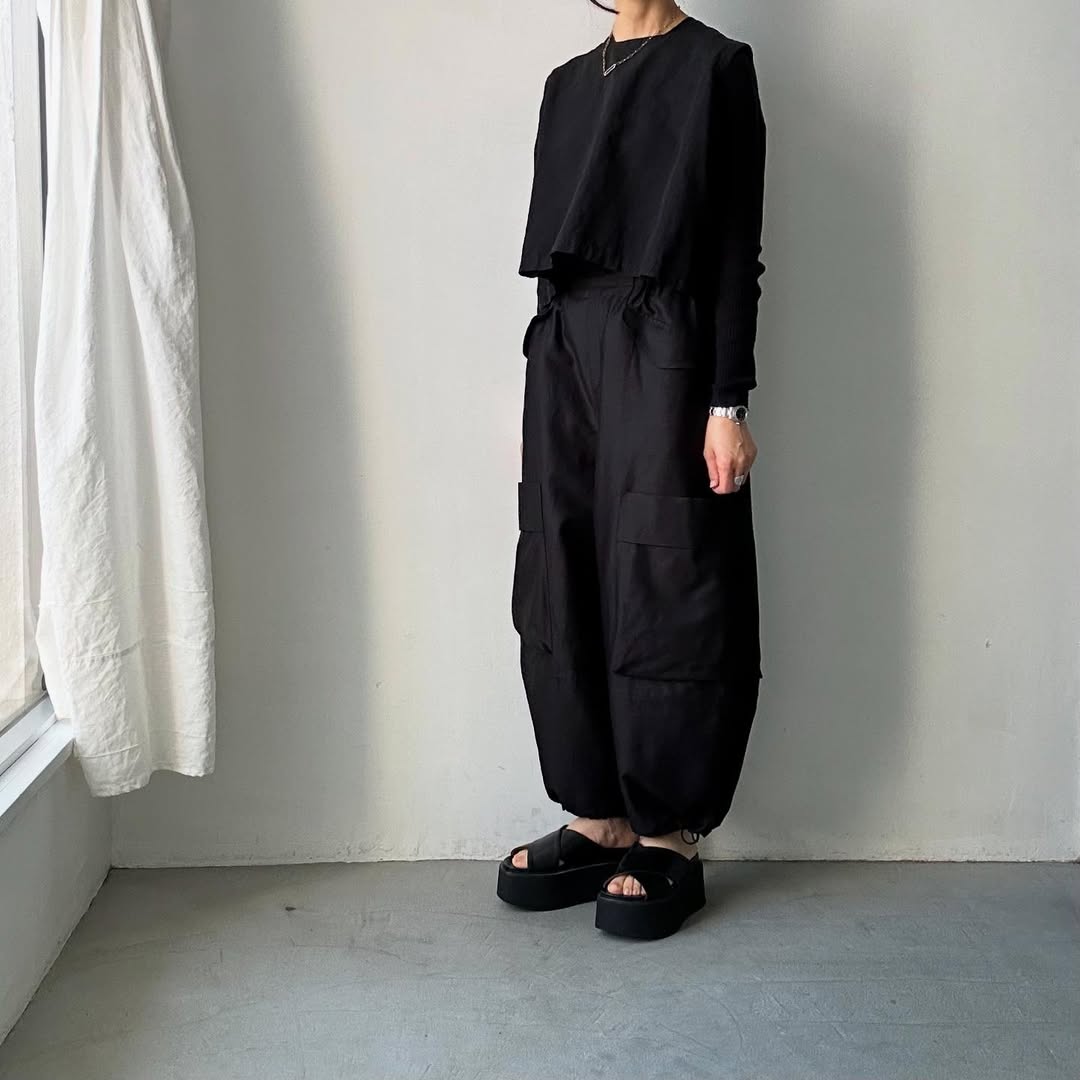 両サイドに付いた大きなポケットが印象的なミリタリーパンツ。ほんのり艶感があり大人の女性らしさと上品さとカジュアル感が程よいバランスです。スニーカー、ストラップシューズ、パンプス、ブーツ。いろいろな靴に似合うパンツです。
